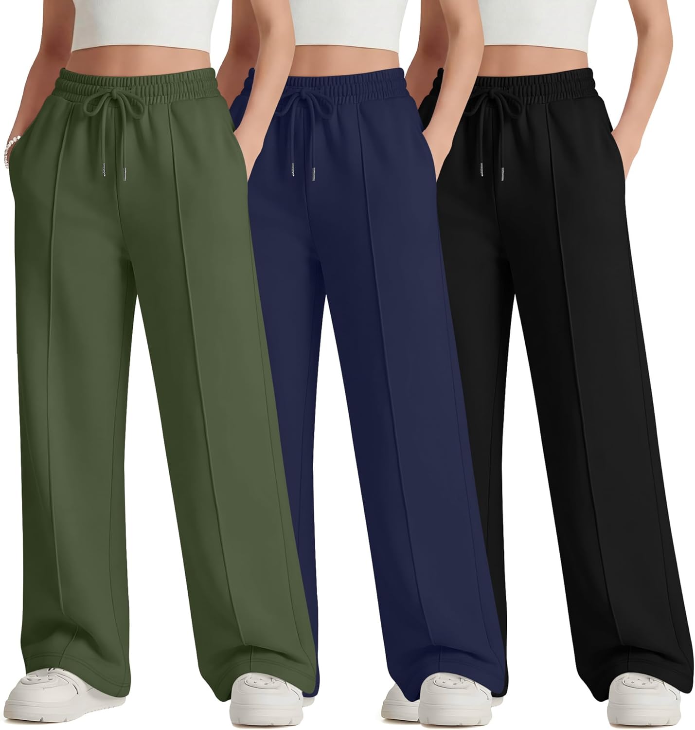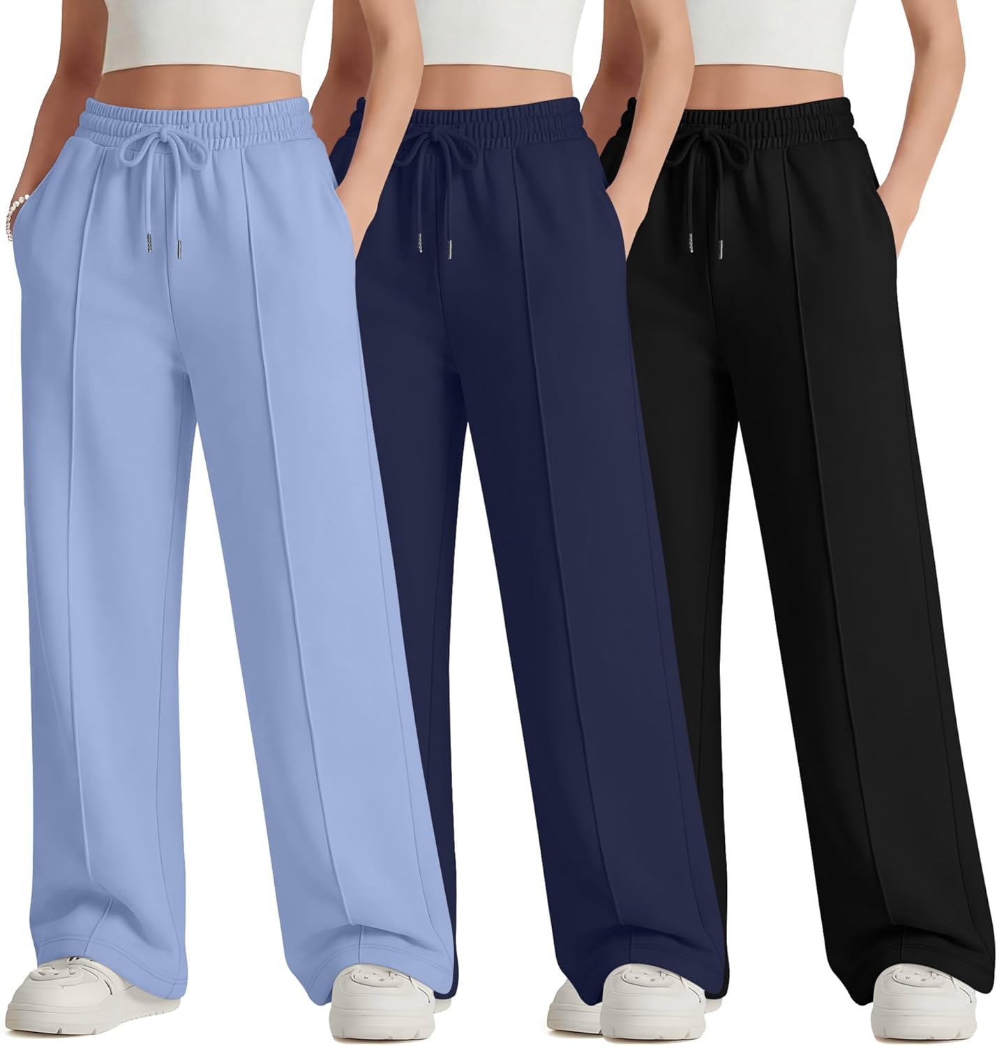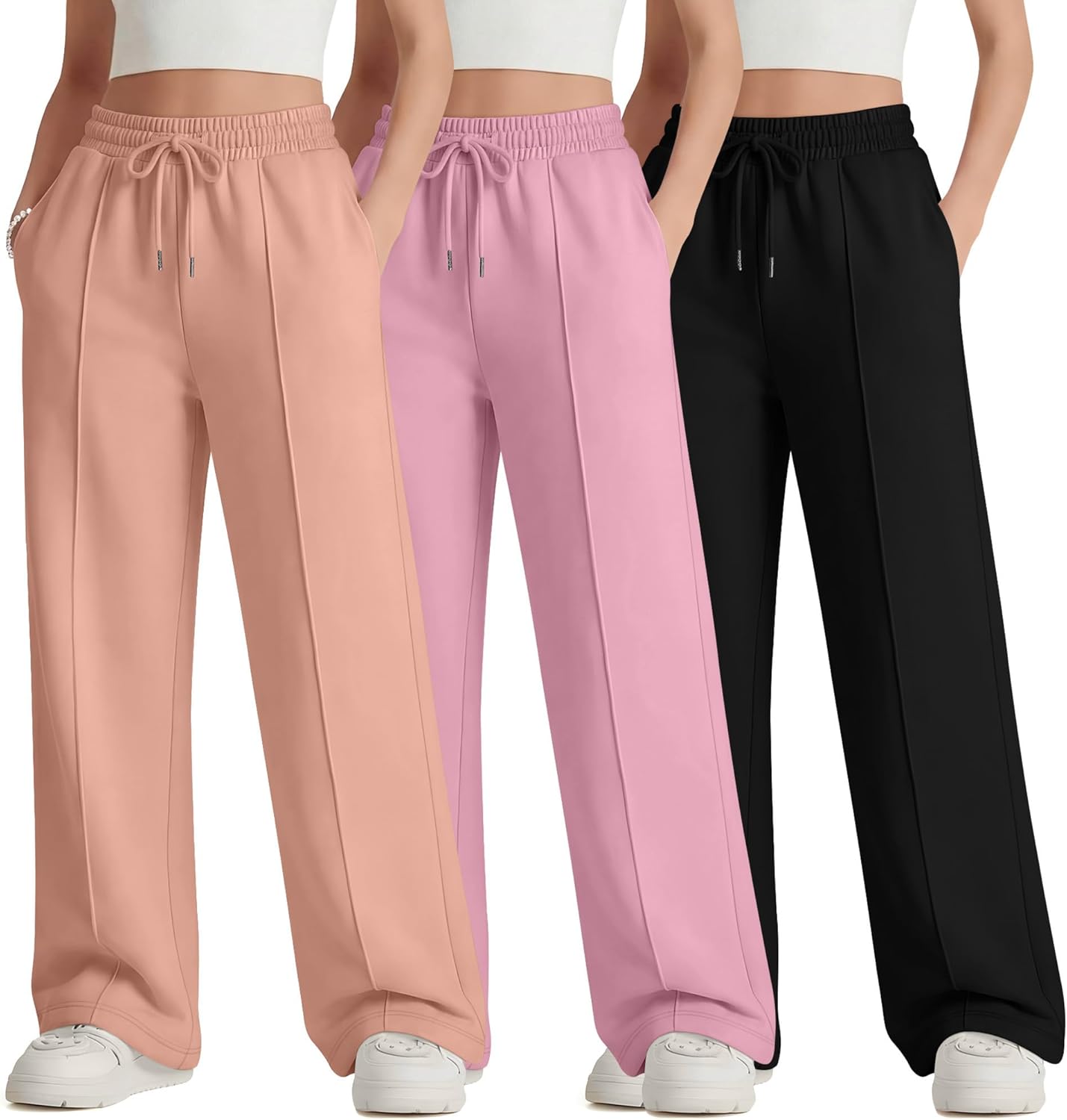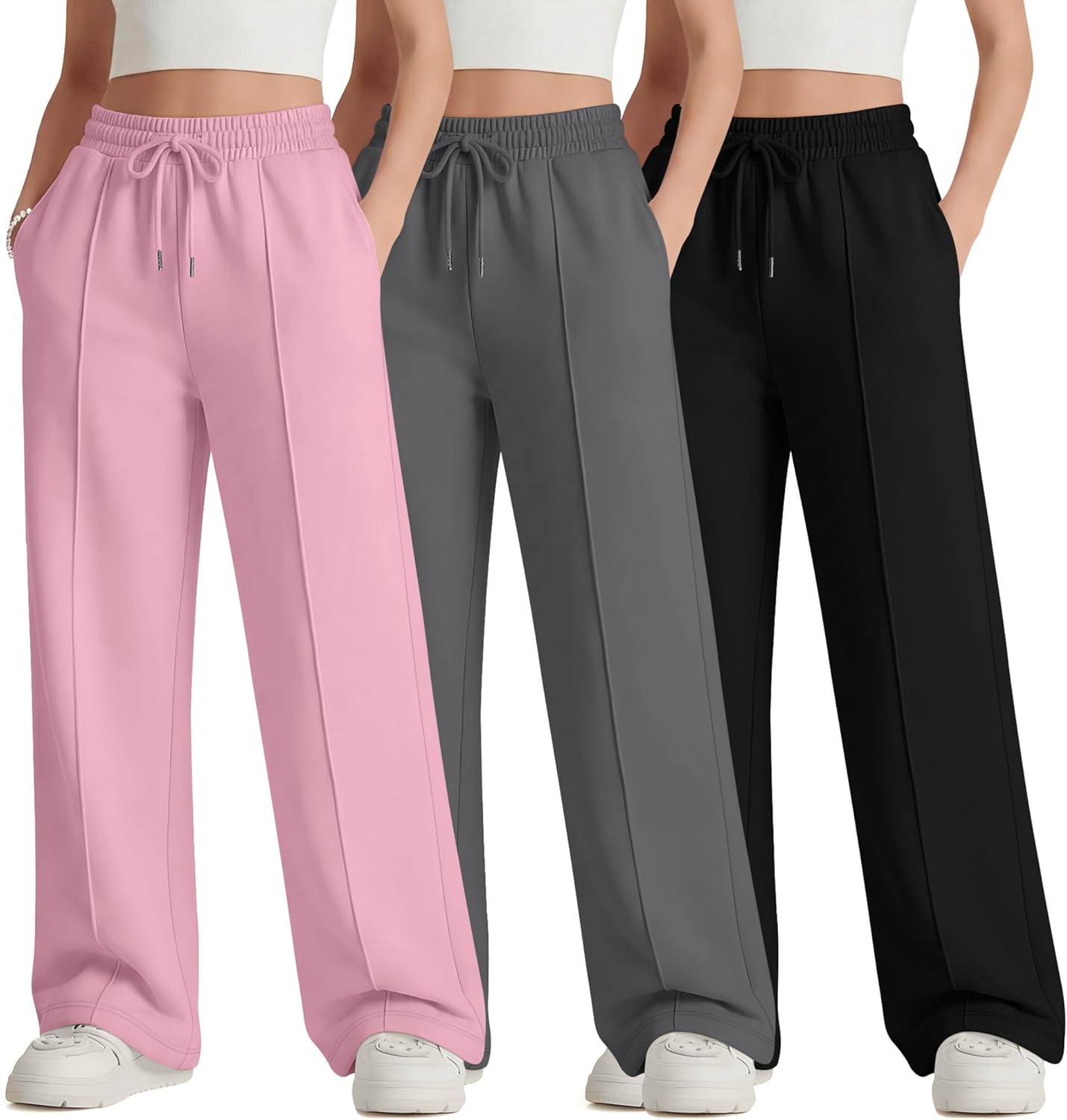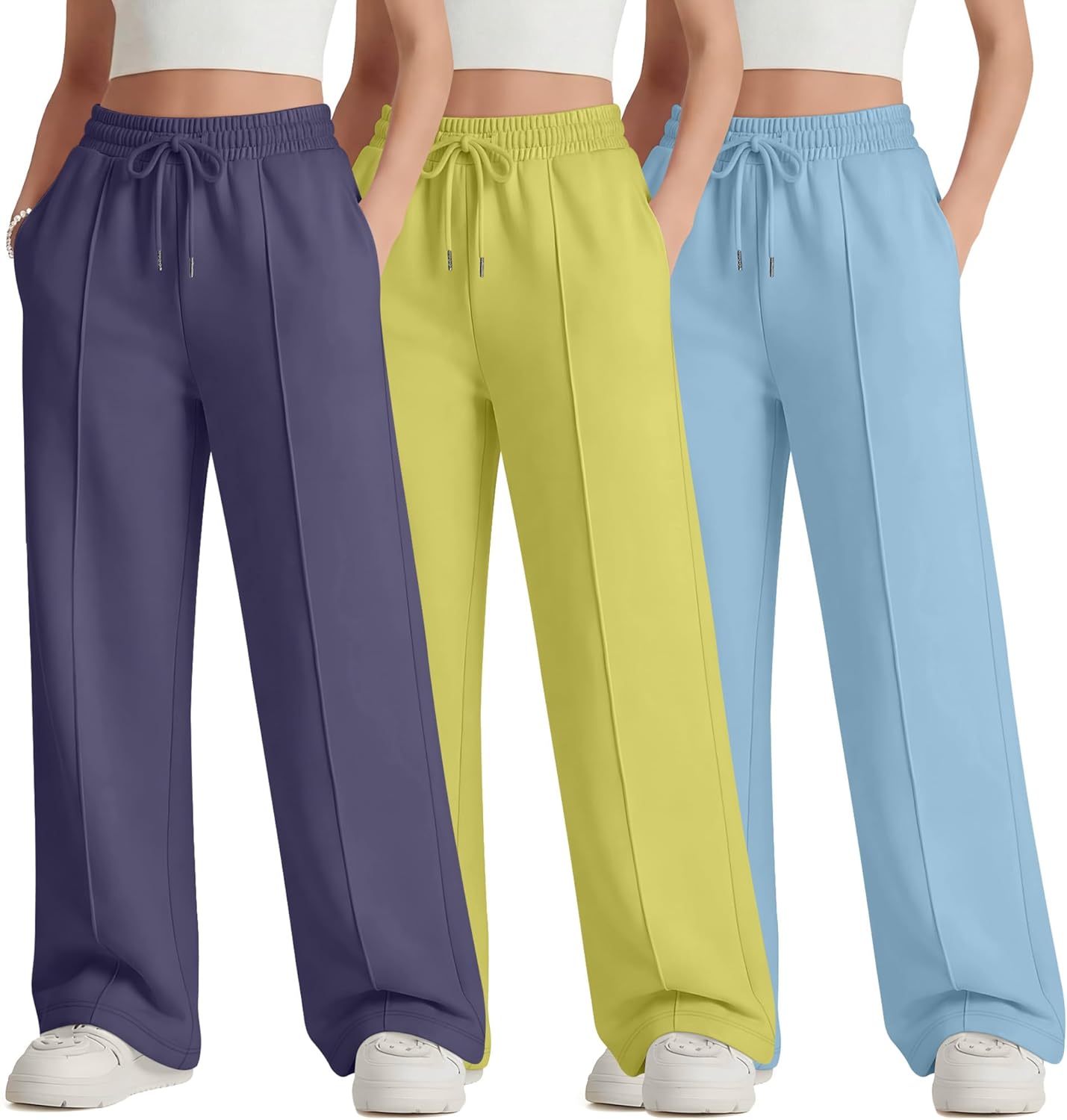 Features: Details about the cut and design: These girl's high waisted joggers pants are regular fit designed, suit for most body shape. One size up is recommended if you want a more relaxed fit effect. Nice present for women: The teen girl's high waisted athletic pants are suitable for girl of different ages, making it a good present for friends, daughter. Specifications: Material: 100% Polyester Package includes: 3 x teen girl's drawstring joggers pants Notes: Manual measurement, please allow slight errors on size. Check the LessonZoo size chart before purchasing, it would help you find a more accurate size for yourself. Hand/machine wash in gentle with cold water, hang to dry or line dry, do not bleach