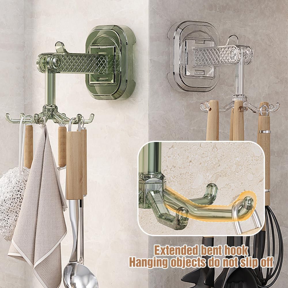 360 Degrees Rotating Folding Hook, Utility Hook Kitchen Hooks for Hanging Utensils, Suction Cup Hooks Rotating Kitchen Utensil Holder with 6 Hooks, Multi-purpose Kitchen Utensil Hanger (B# 3 Color)