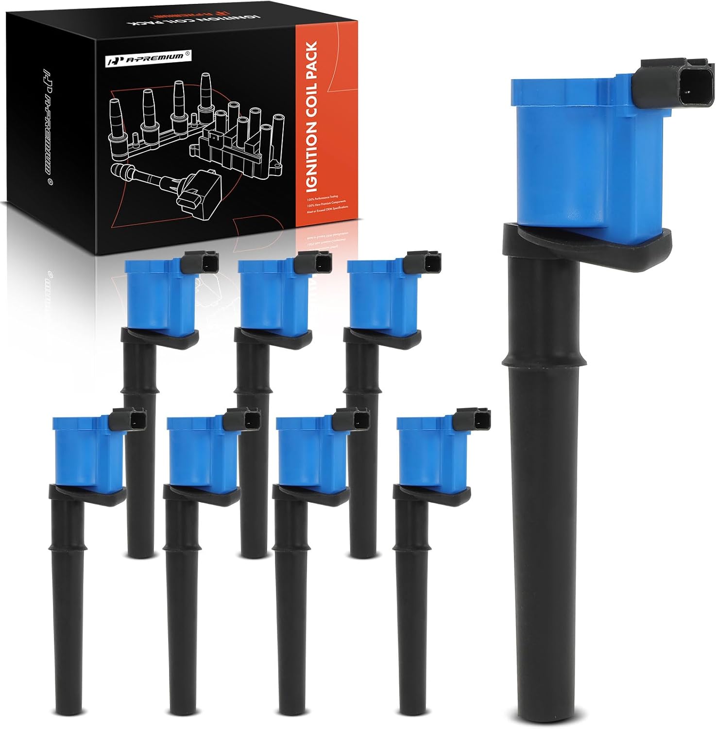 A-Premium (Red) Engine Ignition Coil Pack Compatible with Ford Mustang, GT & Lincoln Navigator, Continental, Aviator, Blackwood, Mark VIII & Avanti Avanti & Mercury Marauder & Panoz & Qvale, 8-PC Set