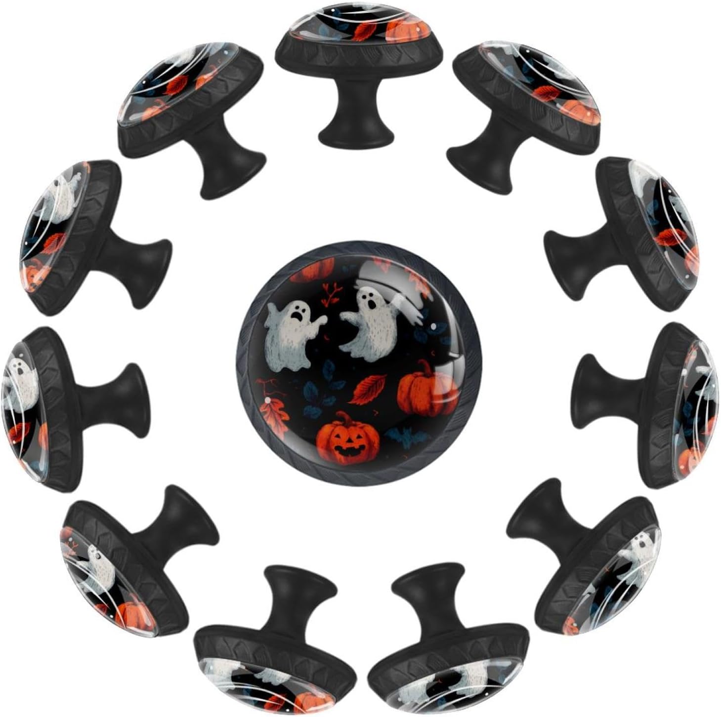 Black Base Halloween Pumpkins Pattern (1) Printed Drawer Knobs, Elegant Cabinet Pulls for Kitchen Bedroom, Furniture Hardware for Dresser Closet