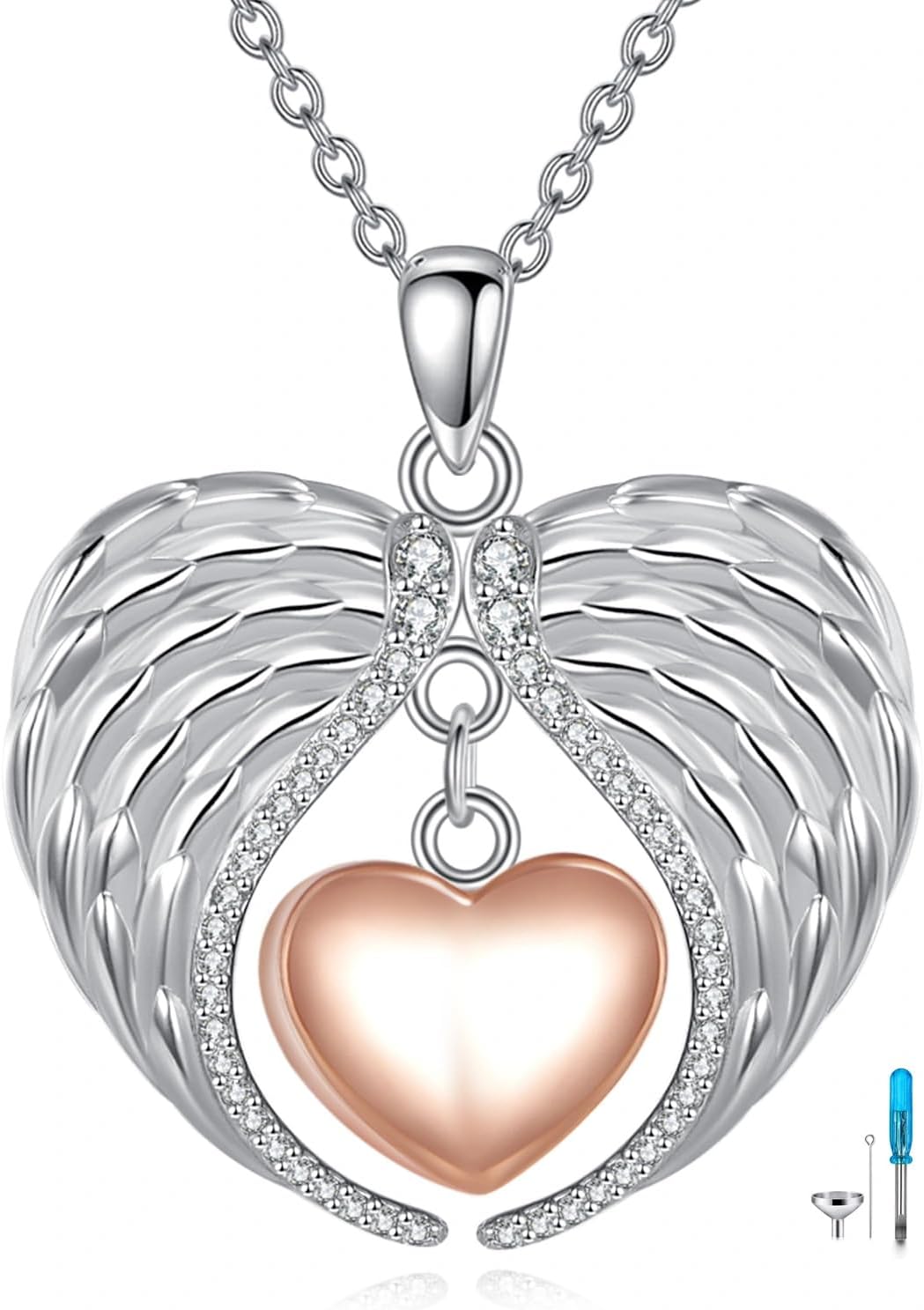 Lab-grown diamond heart urn necklaceDetails: This sterling silver diamond heart urn necklace is hand-painted by the designer, so each of our pieces is unique.Style: Pendant necklaceColor: White + Rose GoldMaterial: 925 sterling silver.Memorial:Whether worn at a memorial ceremony, anniversary, or as an everyday personalized accessory, this lab-grown diamond heart urn necklace can convey respect for life and remembrance of loved ones,combining practicality and sentimental value.Memorial GiftMemorial Gift for RelativesMemorial Gift for PetsMemorial Gift for FriendsMemorial Gift for LoversPackaging Includes:1 exquisite gift box, 1 necklace