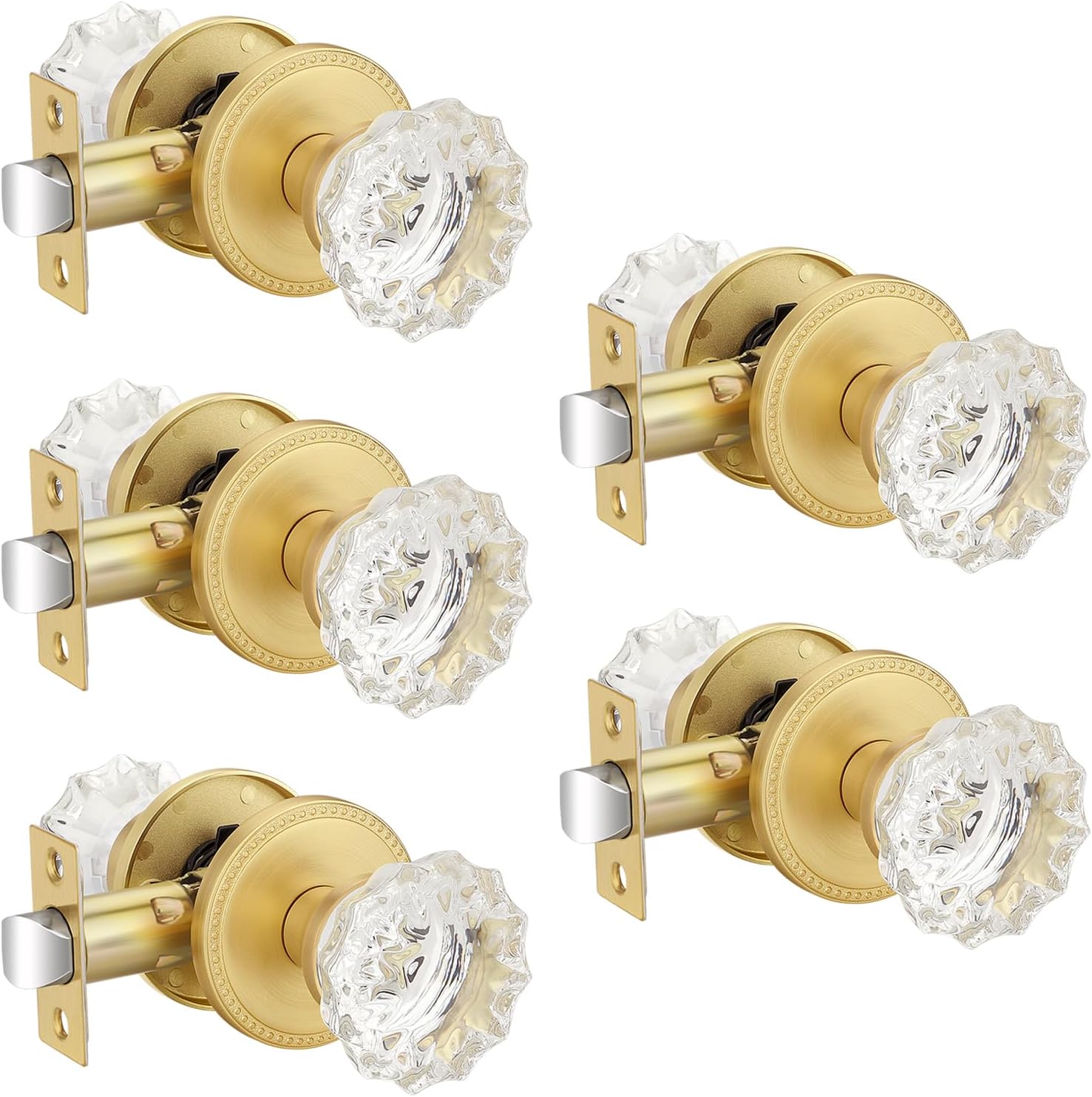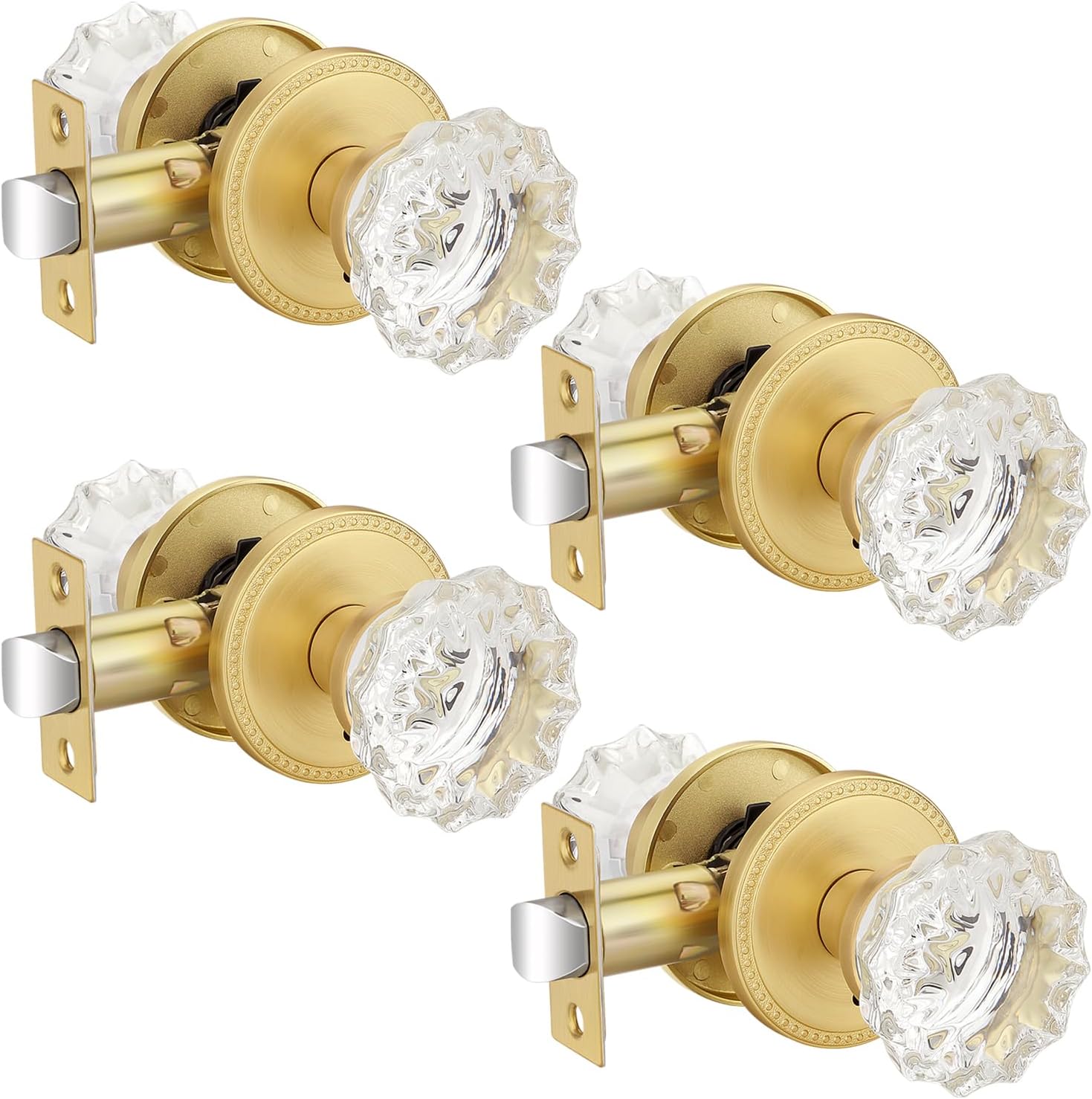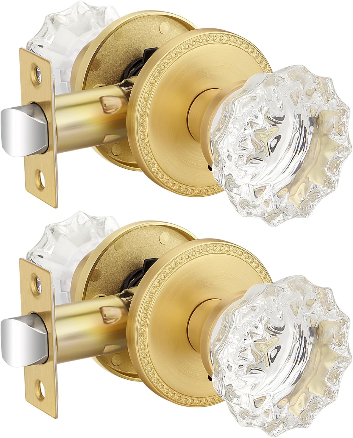 EHOMEWARE 1 Pack Glass Door Knobs Interior, Door Locks for Bedroom, Bathroom Gold, Keyless Privacy Door Levers, Clear Crystal Door Knobs, Universal for Left & Right Sided Doors