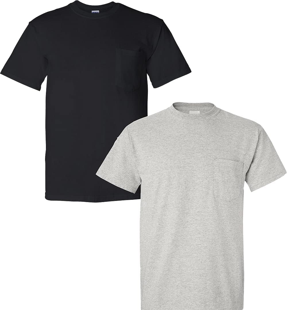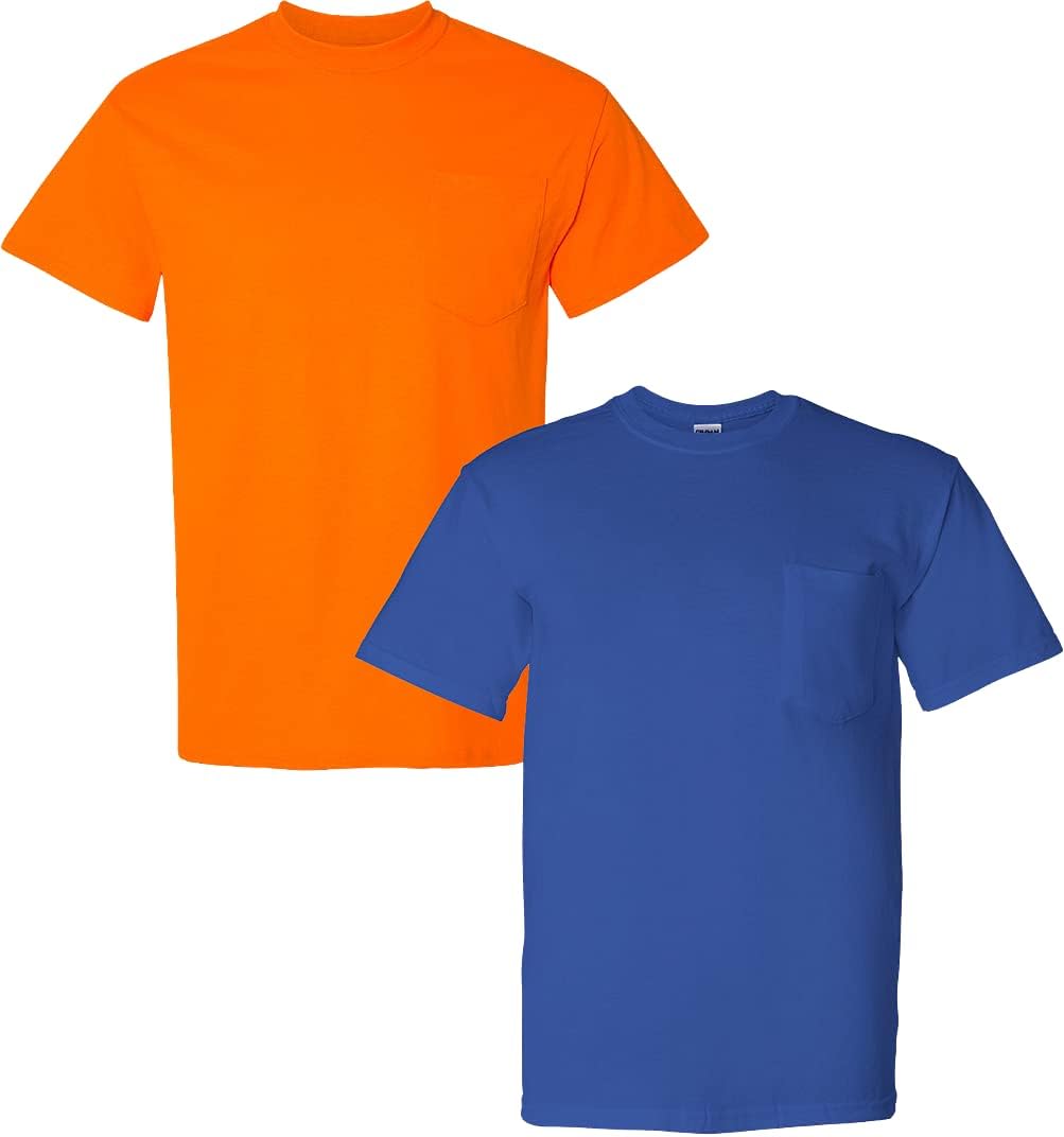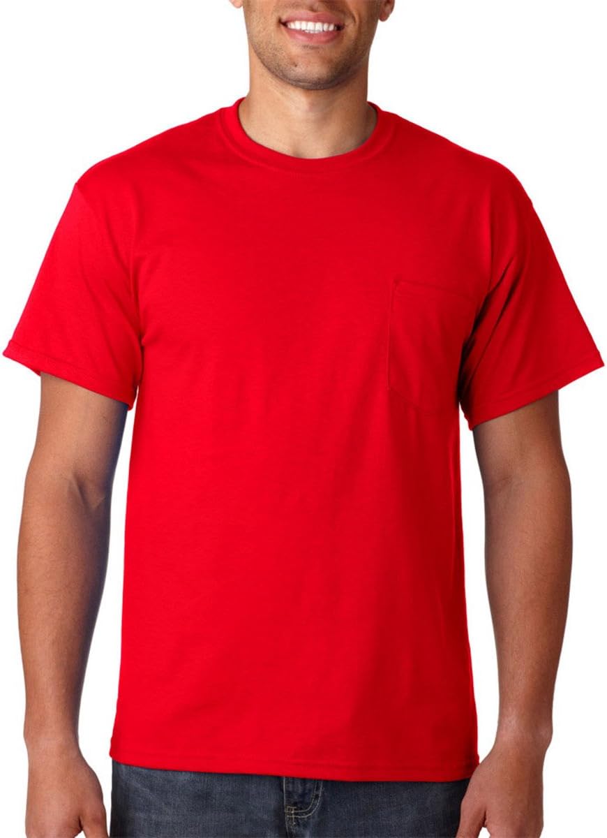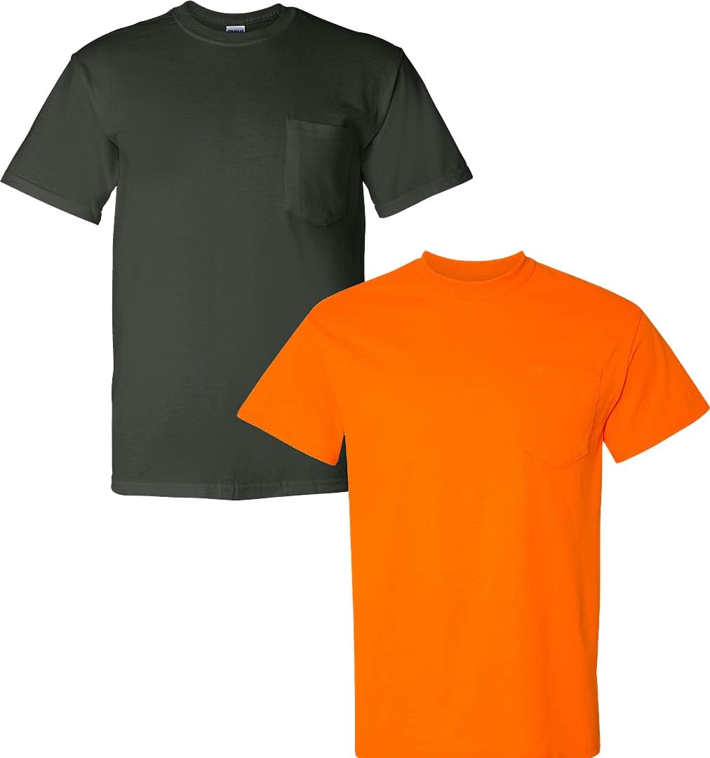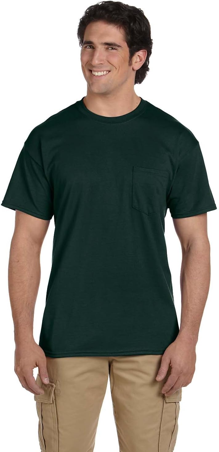 Classic fit. Taped neck and shoulders. 5.5 oz., 50/50 preshrunk cotton/polyester. Seamless double needle 7/8" collar. Single needle left chest set pocket. Quarter-turned to eliminate center crease. Double needle pocket, sleeve and bottom hems. Safety Green: Compliant with ANSI / ISEA 107. DryBlend technology: delivers moisture-wicking properties.