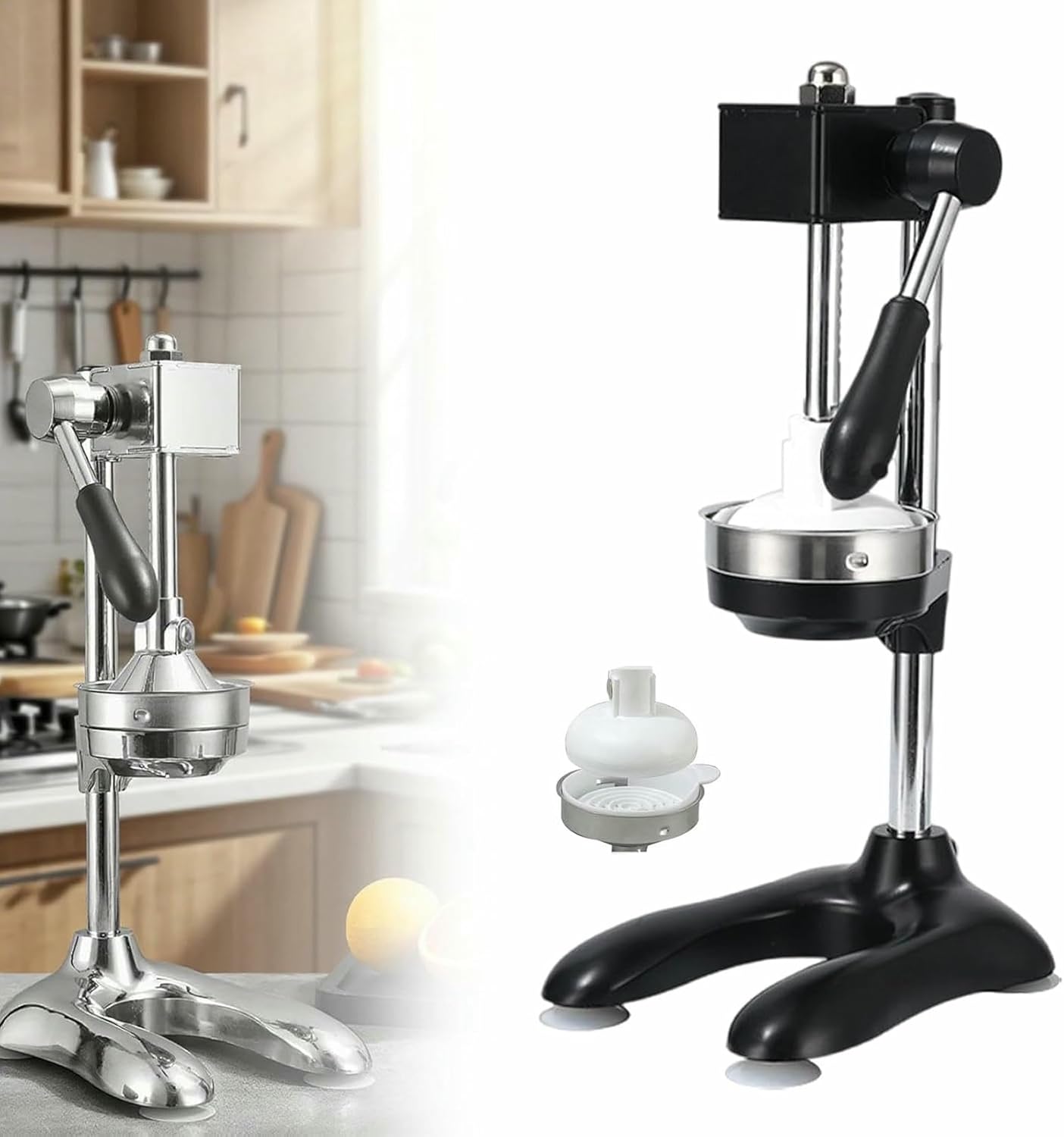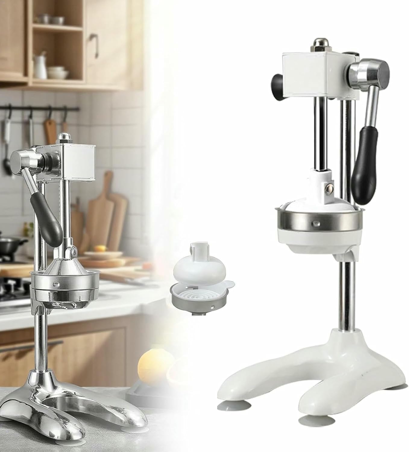 Tired of traditional inefficient juicers? Concerned about material safety?This next-generation turbo extraction juicer offers the solution! Constructed entirely from food-grade 304 stainless steel, ensuring durability and safety while protecting your dietary health. The innovative mechanical gear transmission system requires minimal effort for efficient pressing, saving time and energy while significantly improving juice yield. Handles both hard fruits/vegetables and fibrous ingredients with ease, delivering rich, full-bodied juice every time.Start enhancing your healthy lifestyle with this perfect cup!Features✅ Reinforced U-shaped base + large suction cups for stable, non-slip✅ Food-grade SUS304 stainless steel, maintains shape and rust-resistant✅ Mechanical gear boost design reduces effort, enables continuous juicing without fatigue✅ Large feeding tube and pressure plate ensure even force distribution✅ Removable parts are easy to cleanSpecificationsName: Gear Boost JuicerMaterial: 304 Stainless Steel + Aluminium AlloyStrainer Diameter: 120mmProduct Dimensions: 18 x 23 x 45 cmBase Thickness: 40mmBoost System: Turbo ExtractionPackage Includes:1 x Juicer1 x Pointed Head/Flat Head AttachmentPlease Note:① Due to manual measurement, dimensions may vary slightly. Due to lighting and screen differences, the actual color may differ slightly from the images.② We provide 24/7 support. If you have any questions, you can contact us at any time.