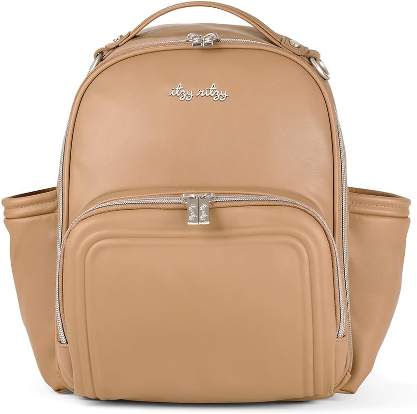 Itzy Ritzy Mini Diaper Bag Backpack – Chic, Compact Mini Plus Backpack with Changing Pad, 10 Pockets (6 Internal, 4 External), Grab-Top Handle & Rubber Feet (Saddle)