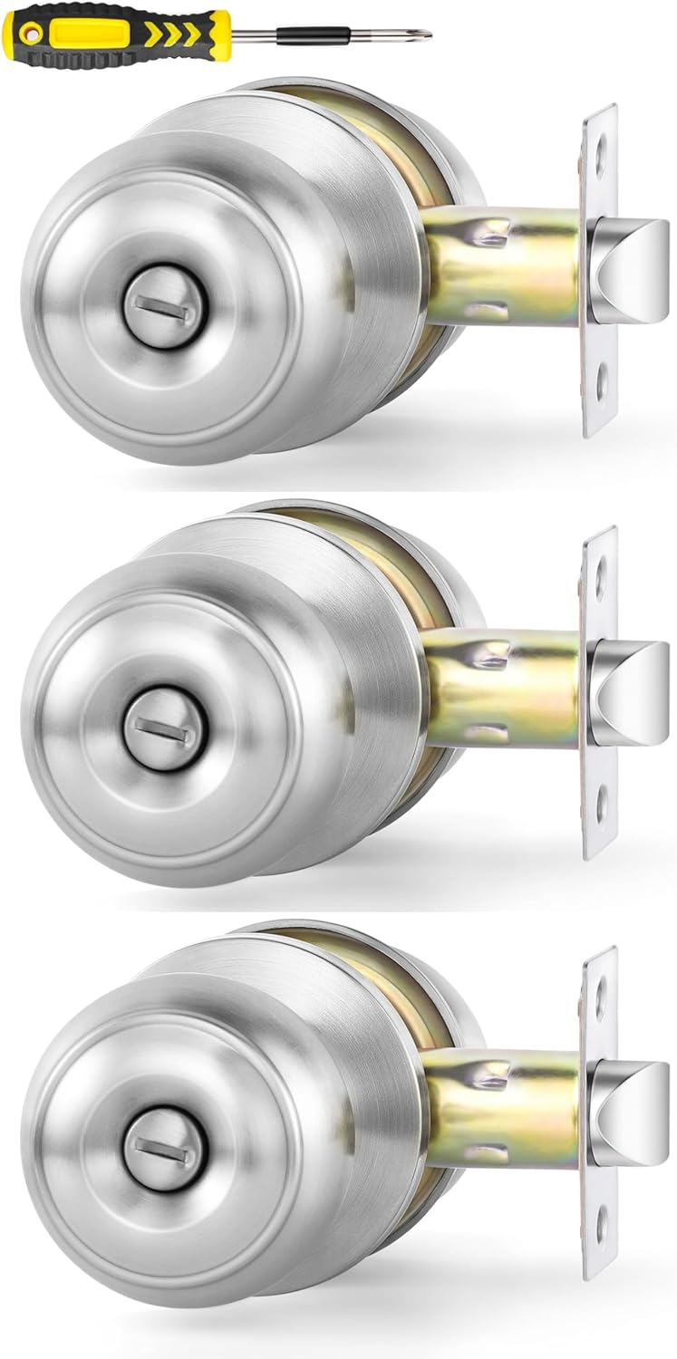 • Material:Stainless Steel; Satin Nickel Finish; Modern Flat Ball Style Privacy Knob