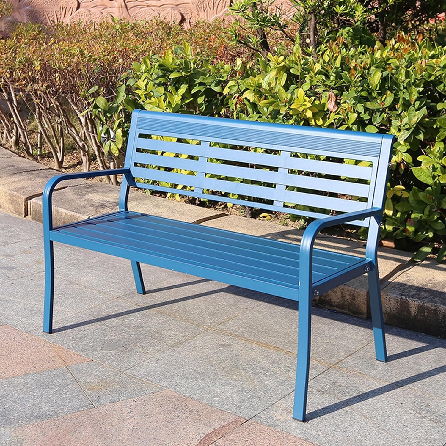 ● Our durable Aluminum alloy bench is perfect for any setting and works whether your porch, deck, patio, or home needs an update. Aluminum alloy frame , the outermost layer is painted to prevent rusting and has been tested to hold up to 551lbs (250kg). OUR STRENGTHS● coating is high-temperature spray paint, rust-proof, waterproof, no color loss● Attractive slatted design is a beautiful addition to any outdoor setting.● Solid Aluminum alloy construction makes this bench heavy-duty oriented.Size :(LxWxH)125x59x84cm /49.2x23.2x33 inchColor: Red copper color , Khaki , Blue , GreenUsage scenarios: courtyard, terrace, sun room, garden, balcony, school, playgroundPackage Includes:1 x Outdoor BenchNotice:1.Due to lighting, display, personal color and other reasons, there may be color difference between the real object and the photo, please refer to the actual object.2.The above data is for reference only, the size is measured by hand, there may be an error of 1-5cm, please refer to the actual product, thank you.