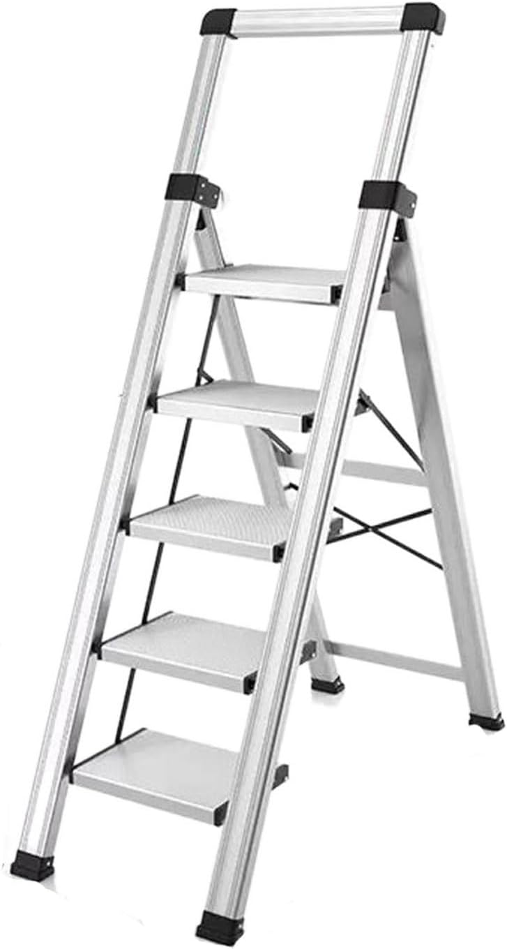 Multi-Function Ladder Folding Step Ladder with Retractable Handrail, 3/4/5 Step Ladder Folding Step Stools for Adults with Anti-Slip Pedal, Portable Sturdy Steel Ladder , Perfect for Kitchen & Househo