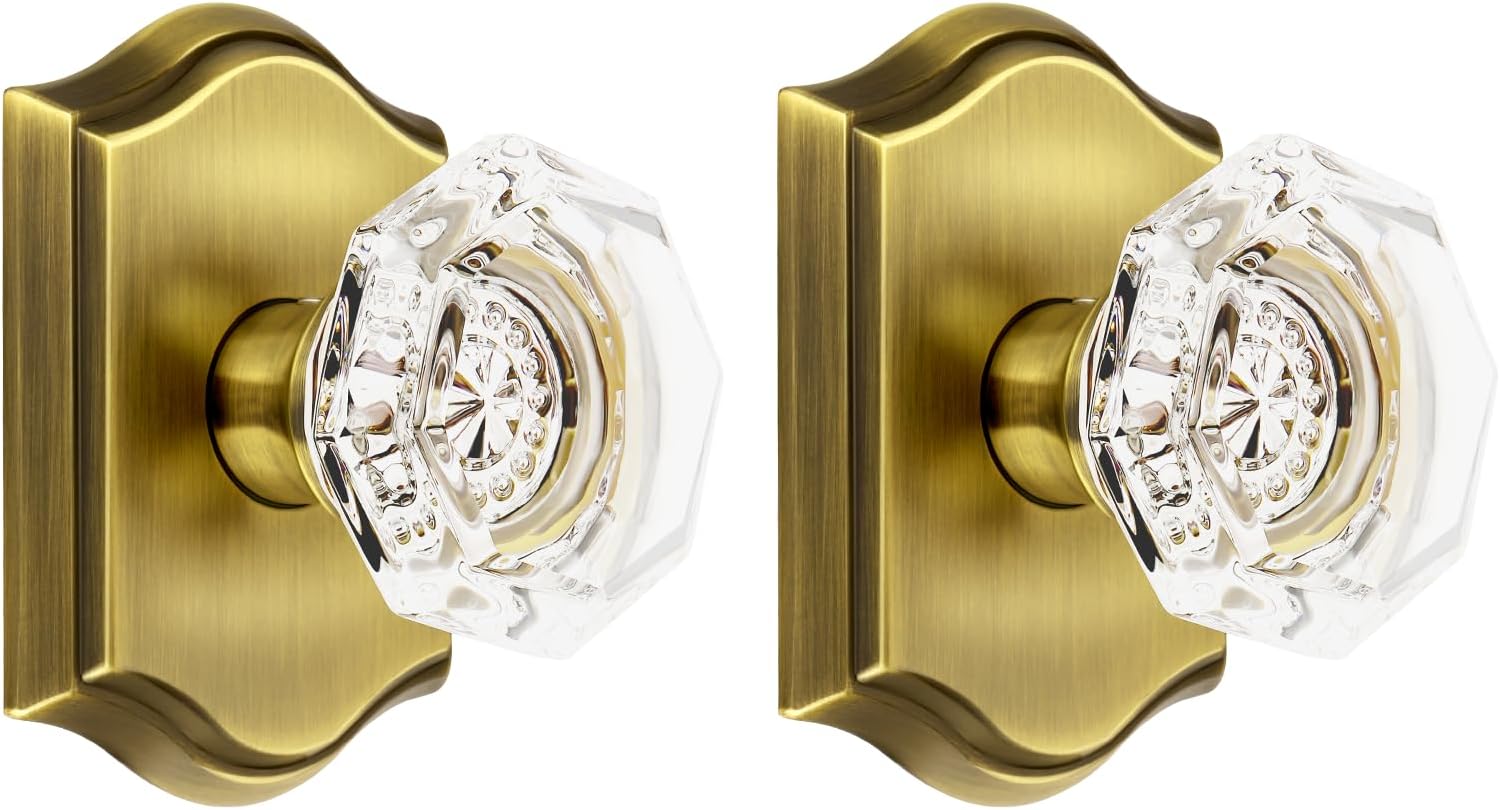 Orger 2 Pack Glass Interior Dummy Door Knobs, Decorative Knobs for Closet/French Doors, Gold Vintage Dummy Door Handles No Drills