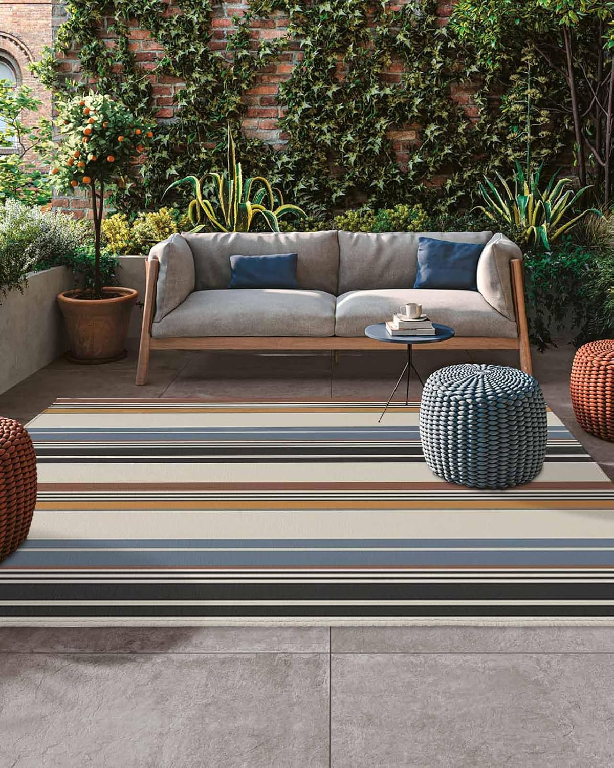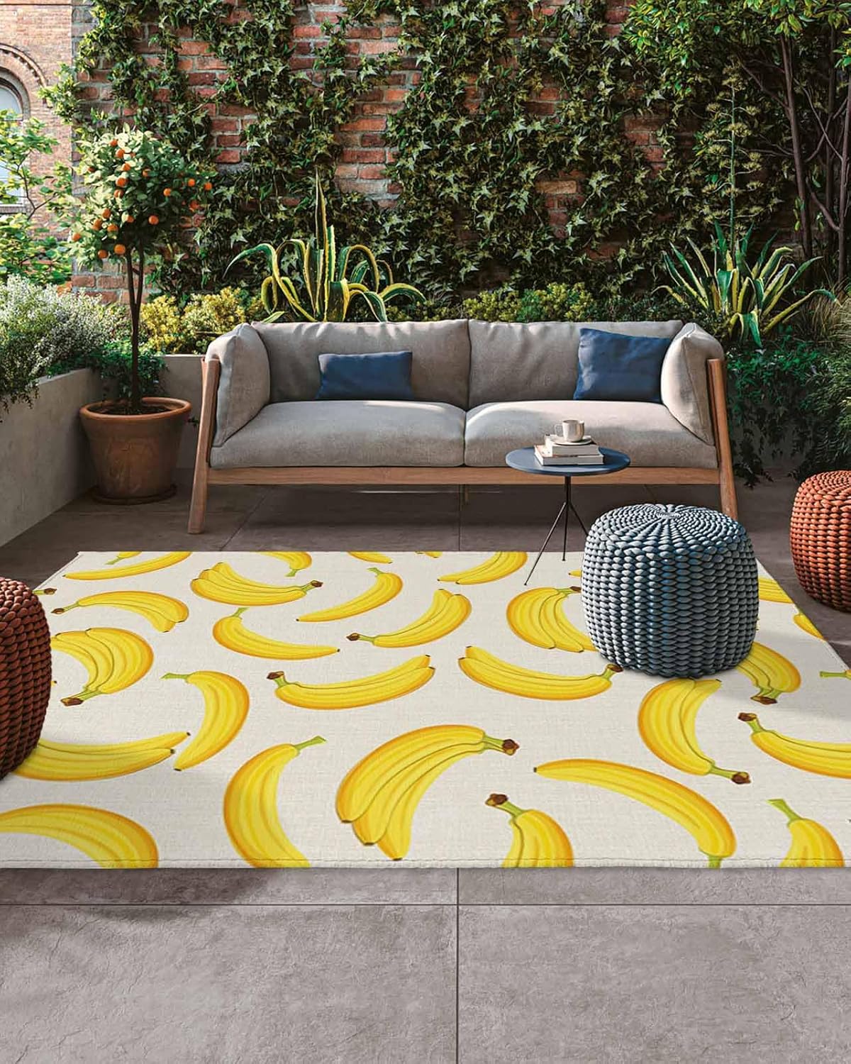 Enjoy supreme comfort and plush softness under your feet.Transform your existing decor with the chic modern style of our outdoor area rug carpet.Size4x6 ft5x8ft 6x9ftThickness measures: 0.2 in.Shape: RectangularBacking: Non-skip rubber points.Package includes:1 PC x Area RugsSpecial Note: Rugs may contain temporary creases upon arrival, allow time for creases to flatten and settle.How to remove carpet creases? 1. Wet the carpet and flatten it to air dry 2. Use a steam iron 3. Roll the area rug in reverse of the wrinkle or crease 4. Use a steam cleanerPremium MaterialMade from high-quality, soft, comfortable and strong durability. Provide a warmer and softer feel under your bare feet and knees, without damaging your deck or grass.Double-layer, outdoor mat is breathable, easy to clean, washable and quick dry.Multiple OccasionOutdoor rugs suitable for terrace, balcony, deck, garden, beach, porch, RV, camping, garage and other places.Versatile Mats Outdoor PatioThe outdoor rug can fit your patio style well, elegant as it is functional, not only protects the floor, but also adds a new view and to show off your personal style.Ideal Home DecorThe soft outdoor carpet is available in multiple colors and sizes to suit your different styles and needs, making it an ideal choice for home decoration.Wash TipsWhen the rug is dusty, only need to wash it with a hose outdoors.