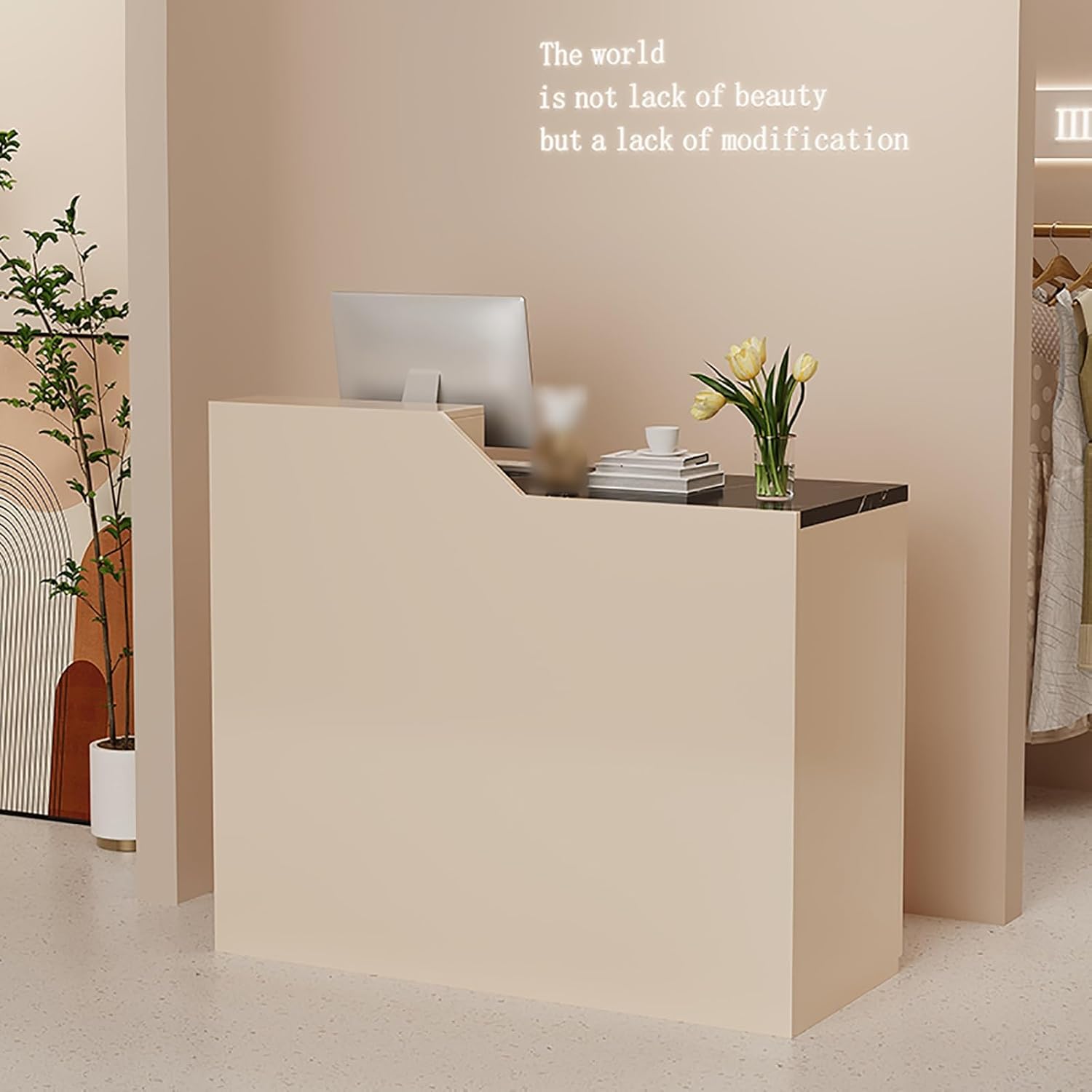 Retail Checkout Counter Front Desk Reception Counter Retail Counter Reception Counter Table with Drawers Modern Welcome Desk our versatile reception desk is the ultimate solution for businesses seeking a modern and practical addition to their space. Whether you're in need of a retail checkout counter, a front desk reception area, or a welcoming table for your lobby, our reception desk delivers on all fronts with its impeccable design and multipurpose functionality.Durability is another hallmark of our reception desk. Constructed from high-quality materials, it's built to withstand the rigors of daily use in a commercial environment, ensuring long-lasting performance and reliability. Whether it's enduring the constant flow of customers or withstanding occasional spills and stains, our reception desk stands the test of time with ease.But beauty is not the only thing our reception desk has to offer – it's also incredibly practical and efficient. Equipped with ample storage space, including convenient drawers, it enables you to stay organized and keep essential items such as stationery, documents, and other supplies within easy reach. Say goodbye to cluttered surfaces and hello to streamlined functionality.Crafted with meticulous attention to detail, our reception desk boasts a contemporary aesthetic that effortlessly elevates the ambiance of any environment. Its sleek and minimalist design, characterized by clean lines and a sophisticated finish, ensures that it seamlessly integrates into various settings, ranging from bustling clothing stores to tranquil beauty salons and vibrant milk tea shops.In environments where secure handling of money and sensitive documents is crucial, the lockable drawer and cabinet offer peace of mind. This feature ensures that your belongings are safe and easily accessible, providing both security and convenience. This makes our reception counter an excellent choice for businesses that priori