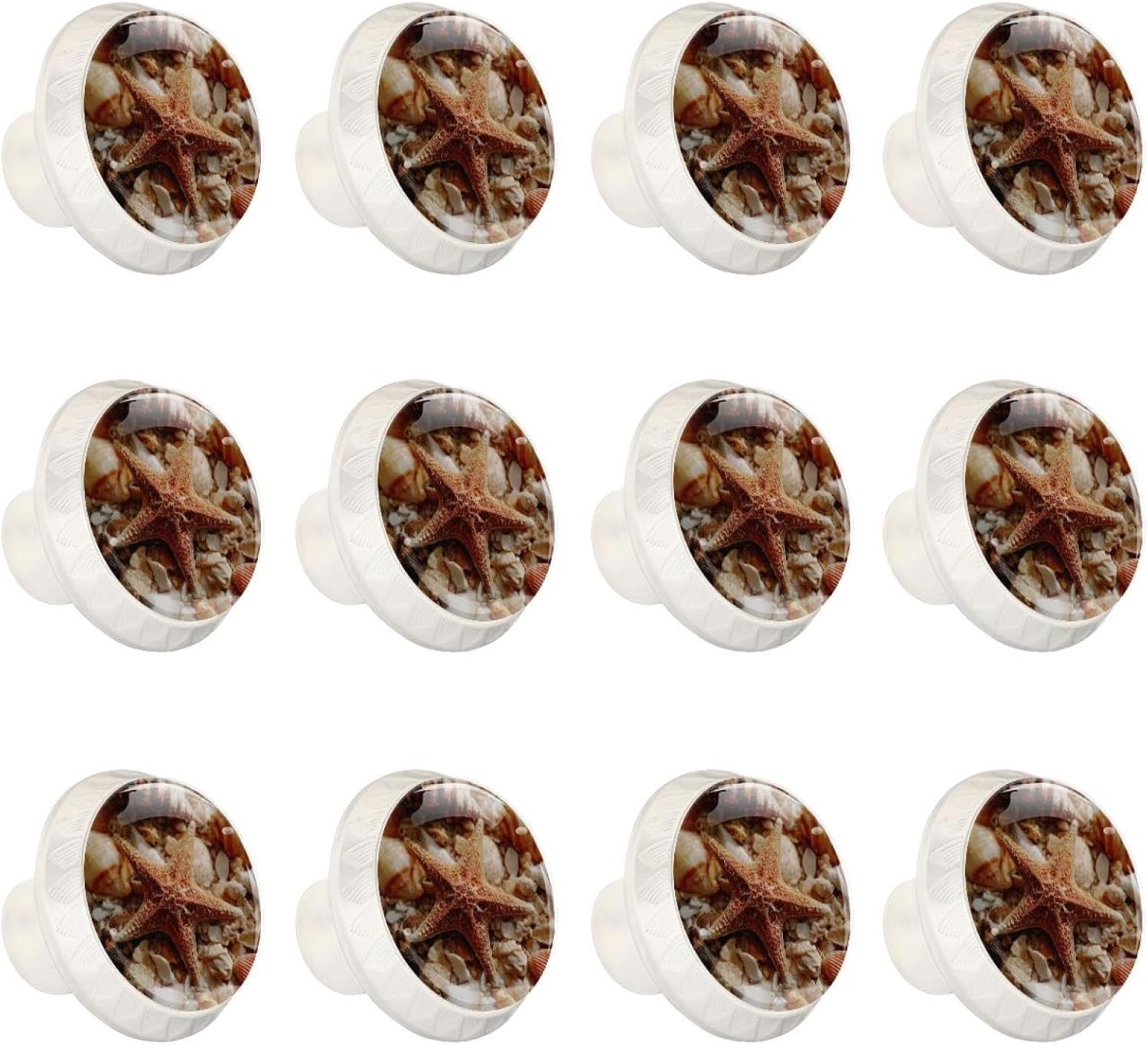 Starfish Shell Conch Background Modern Pattern Drawer Knobs, Stylish Cabinet Hardware Knobs for Furniture, Dresser Cupboard Wardrobe Closet Door Pulls