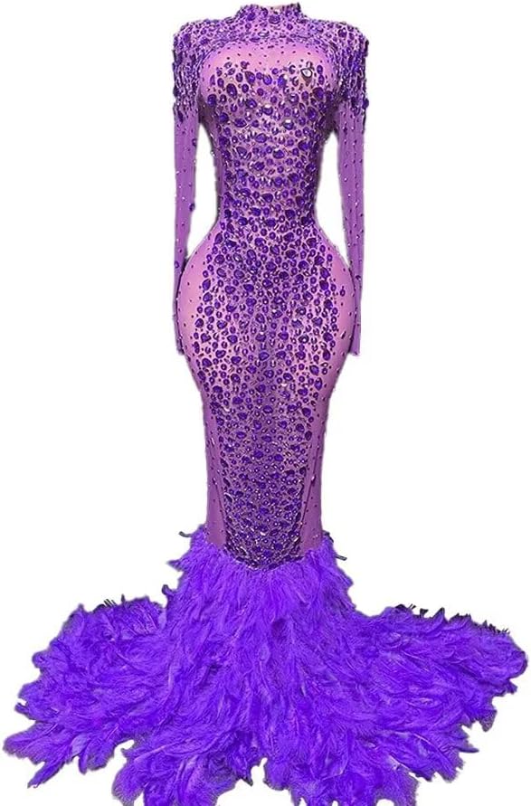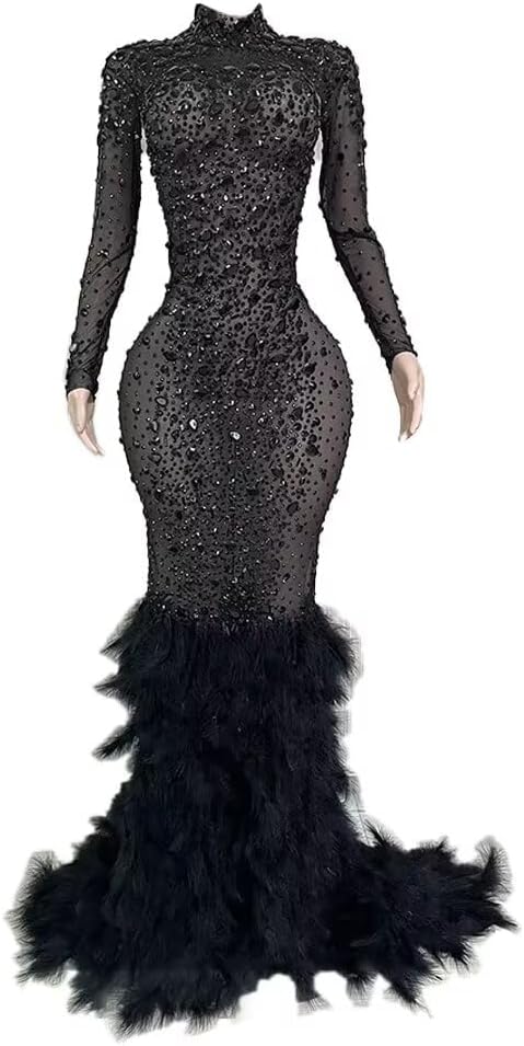Welcome to Snyspakly Store!Note: The styles are designed by our designers, all of which are genuine copyrights, and any imitation is prohibited.Item: Tulle Half Transparent Rhinestone Sparkly Prom Dress Women's Feather Long Ball Celebrity Gala Pageant Evening Party GownCondition: 100% NewFabric: Rhinestorn, Tulle, Feather, 100% made hand.Style: Mermaid Prom DressHemline/train: Floor Train.Neckline: Crewneck.Sleeve: Long Sleeve.Closure at Back: Zipper Closure.Please see our size image.If you don't know your size, please contact us through Amazon. Customized services are allowed. Also, you can send us your measurement size list.Size list:1.Bust :_______Inches2.Waist :_______Inches3.Hips:_______Inches4. The time you need____.Return policyThe Colour may vary by monitor. All the dresses don't come with the accessories displayed in the picture.If you receive a defective dress or the wrong (wrong color, wrong dress), please contact us within 5 days after receiving the dress. Returned your dress (Item must be completed, unused, unwashed with original tags). After we check it well, we will refund your money or resend you a new dress.