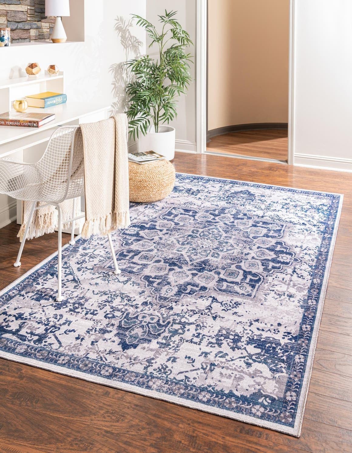 Timeless looks on washable rugs; what's not to love? With bright contemporary colors and tribal-inspired medallion designs, the Renaissance Collection brings home worldly design in a low-maintenance package. Durable modern materials and a cotton backing mean cleaning is as easy as throwing it in the washing machine! The printed traditional designs are available in bold colors ranging from dark blacks and blues to bright greens and pinks blend together like tie-dye, giving you lots of options. A subtle abrash gives the rugs a casual, distressed look perfect for bohemian and shabby-chic decor.
