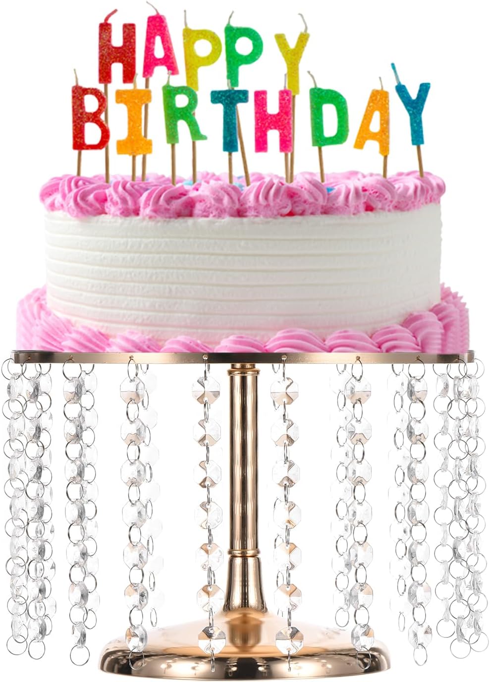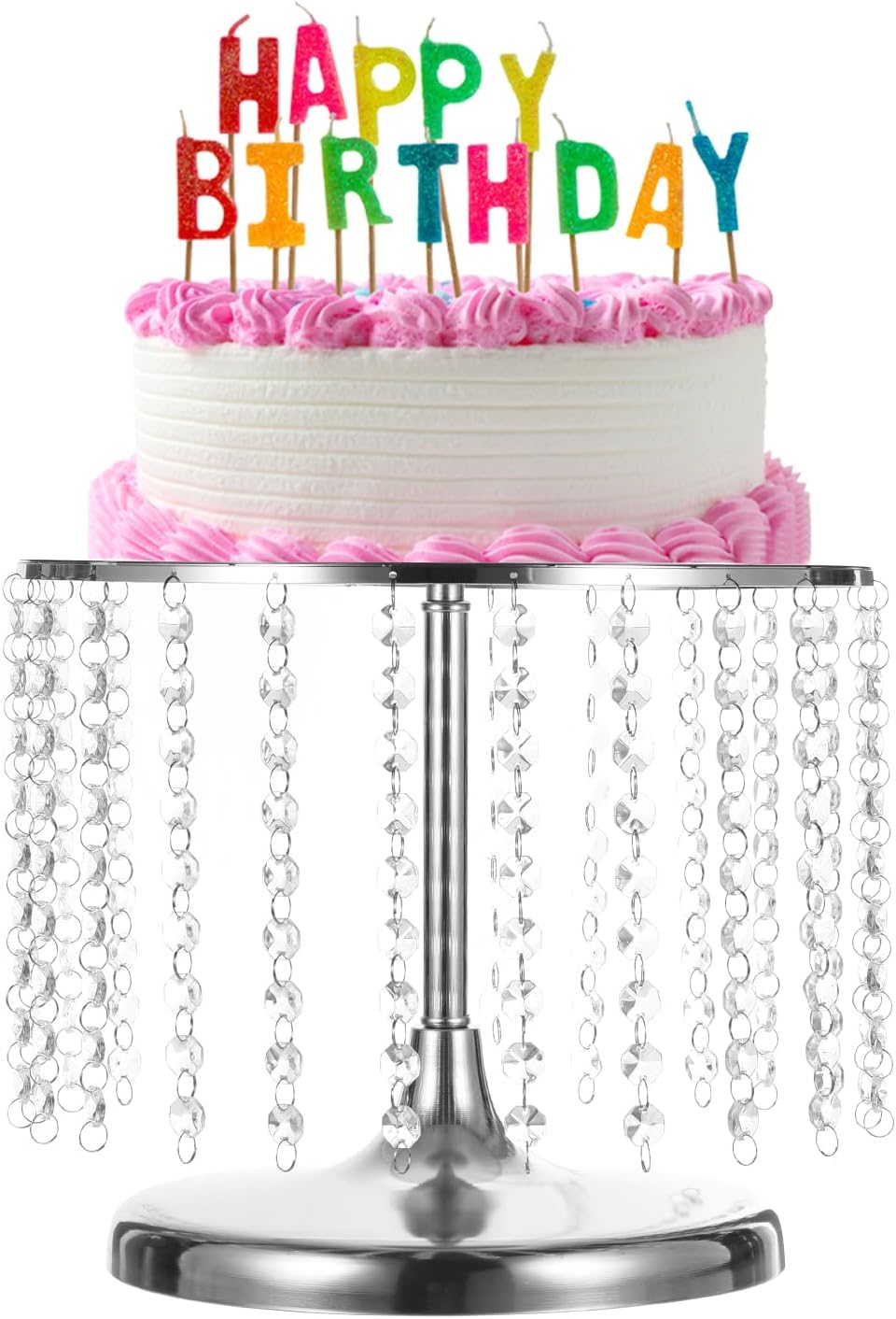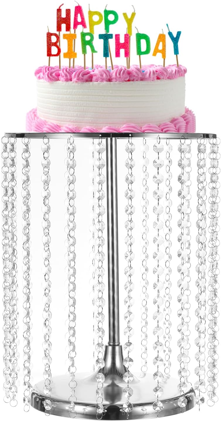 Advantage:Made of metal with a shiny metallic finish with acrylic crystal pendants and beads that sparkle in the light, when the sunlight hits the crystals stunning.The stand comes in two pieces; the base, and the cake plate. Just screw the top of the tray onto the base, you will get a crystal cake stand.Easy to clean, just wipe the surface with a wet cloth when needed. Not dishwasher, oven, or microwave oven.Great for display and storage of cakes, cookies, cupcakes, donut, and chocolate, or put it on the table as a decoration.Suitable for tea party, graduations, weddings, Christmas, thanksgiving, and more.Specification:Material: MetalColor: GoldDiameter: 30 cm/11.81 inchHeight: 20 cm/7.87 inchPackage Included: 1pcs x wedding cake stand
