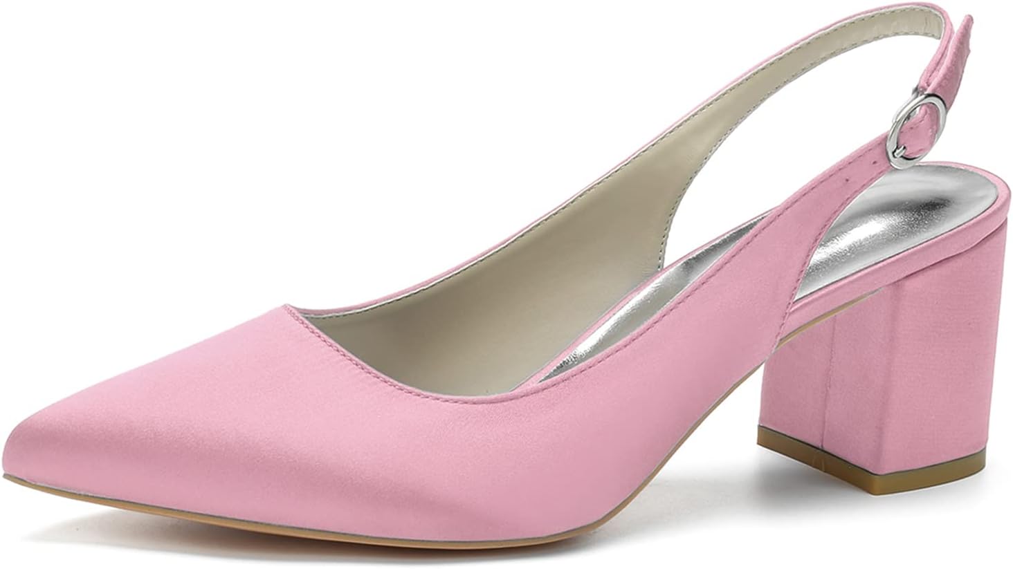 Product descriptionWomen's Shoes Heel height: 6 cmOuter Material: Satin Inner Material: SyntheticSole material: RubberHeel Type: Block HeelClosure: BuckleShoe Width: NormalWomen's Slingback Closed Toe Block Chunky Low Heel Pumps 2.36 Inches Office Wedding Party Dress ShoesFeaturing an backless and chunky heel design, these high heels for women are both stylish and classic.This ladies wedding pumps will be a great choice as bride wedding shoes,bridesmaid shoes,prom party shoes,dress shoes,wedding reception shoes or other special occasion shoes.Our shop provided varied women dress shoes such as heels, pumps, platforms, sandals, straps, wedges, flats, boots and more, and related matching wedding accessories, like shoe clips, tote bag, brooch pins and etc.Suggestion: Had better check the actual measurements(Foot Length) in the size chart on the shoes product page and compare them to your foot measurements before ordering.