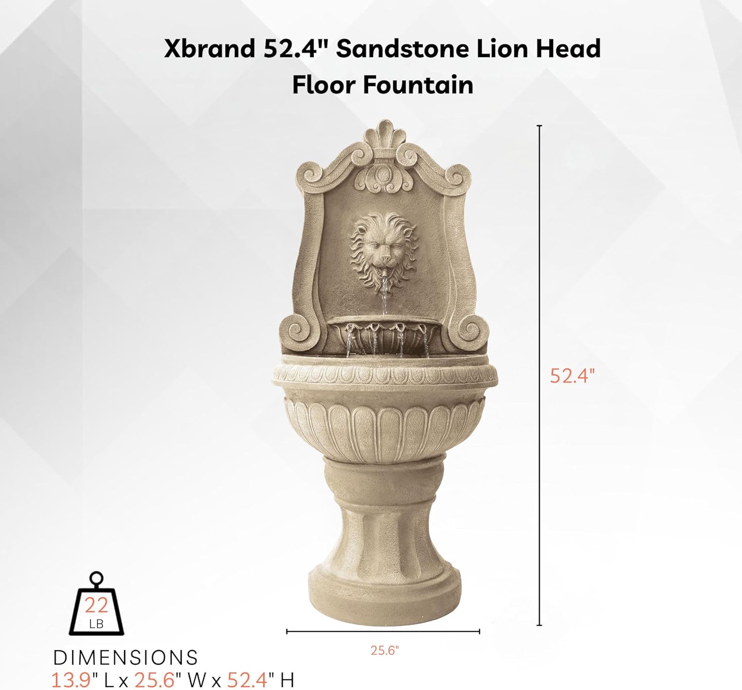 Add elegance and tranquility to your home or garden with the XBrand 52.4" Wall Fountain.This freestanding fountain is designed to sit beautifully against a wall, creating a soothing focal point with the gentle sound of flowing water. Crafted from durable resin, it’s lightweight yet sturdy, ensuring long-lasting use indoors or outdoors. The included electric pump (350 LPH, 120V) keeps water circulating smoothly with minimal splashing, while the 3-gallon capacity reduces refills. Perfect for patios, living rooms, or entryways, this fountain brings a calming, decorative touch without complicated installation or upkeep. Just fill with distilled water, plug in, and enjoy the ambiance.