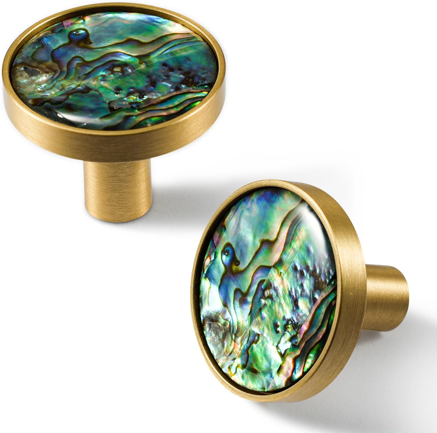 • ELEGANT - The front side is made of natural shells covered with acrylic, with a beautiful and bright pattern, full of elegance. The beautiful shells pattern makes each knobs is unique. Let it be a unique decoration for your home.