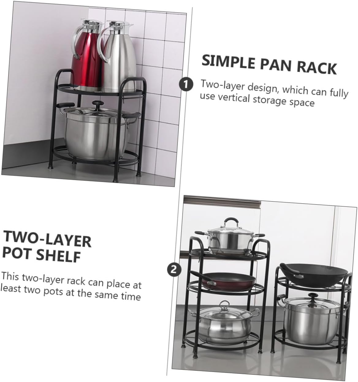 • Convenient pot rack: two-layer design, which can fully use vertical storage space,cookware holder stand
