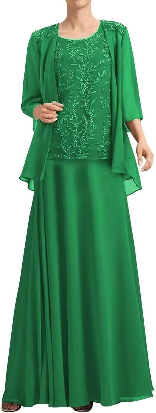 | Material Type | Chiffon 2 pieces mother of the groom dress with jacket, long sleeves wedding gust dress for women |