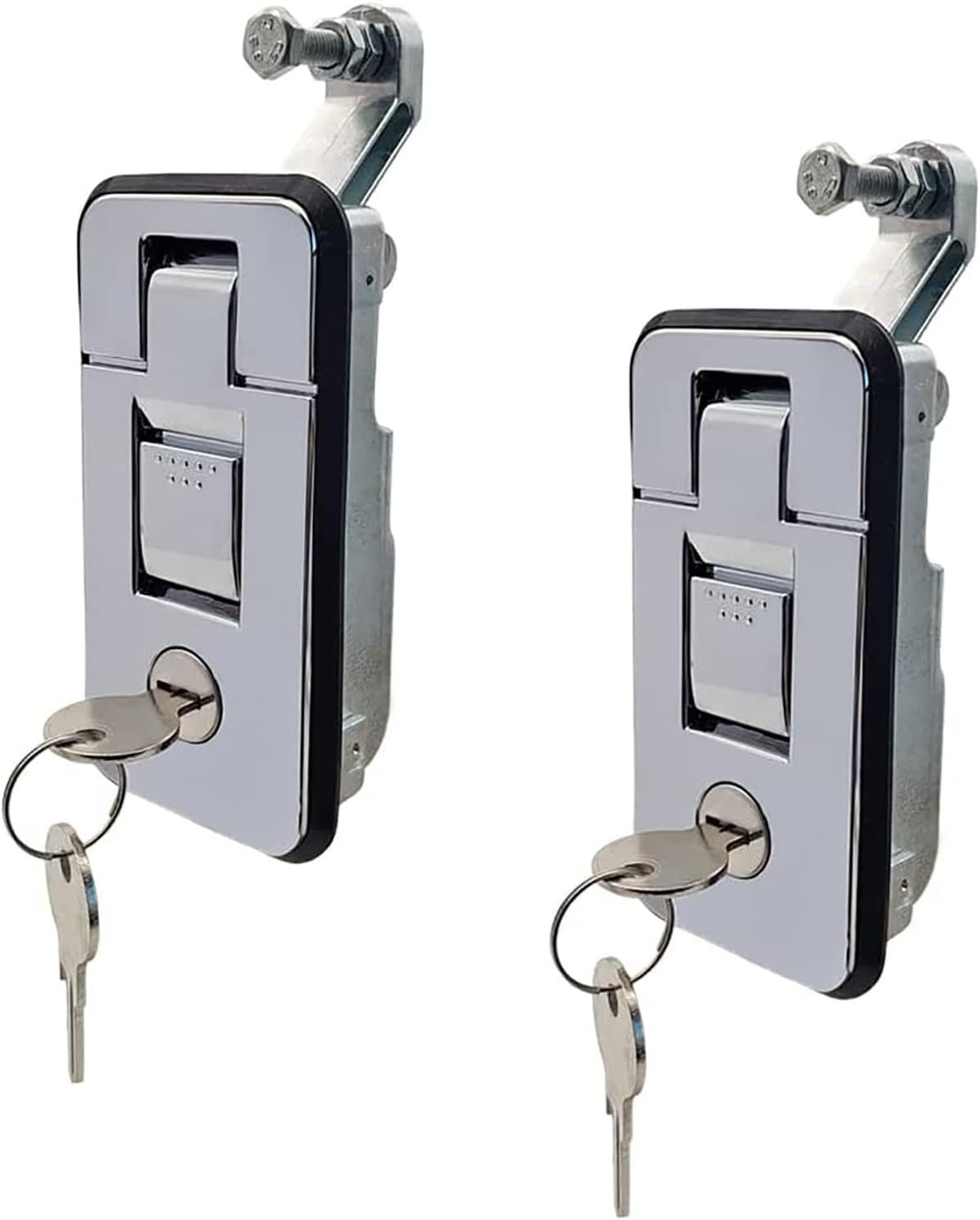 Product description Size details please see the despriction in the picture. 2 Piece compression latch packed with 4 Pieces Keys. 【Function】:Push to open latch. The latch is designed with key locking. It is very convenient to use. It also provides extra security. 【Material】:High quality zinc alloy with precisely coating and plating, our compression latches are sturdy and durable even in wet enviroment. Manufacturer Contact Information /