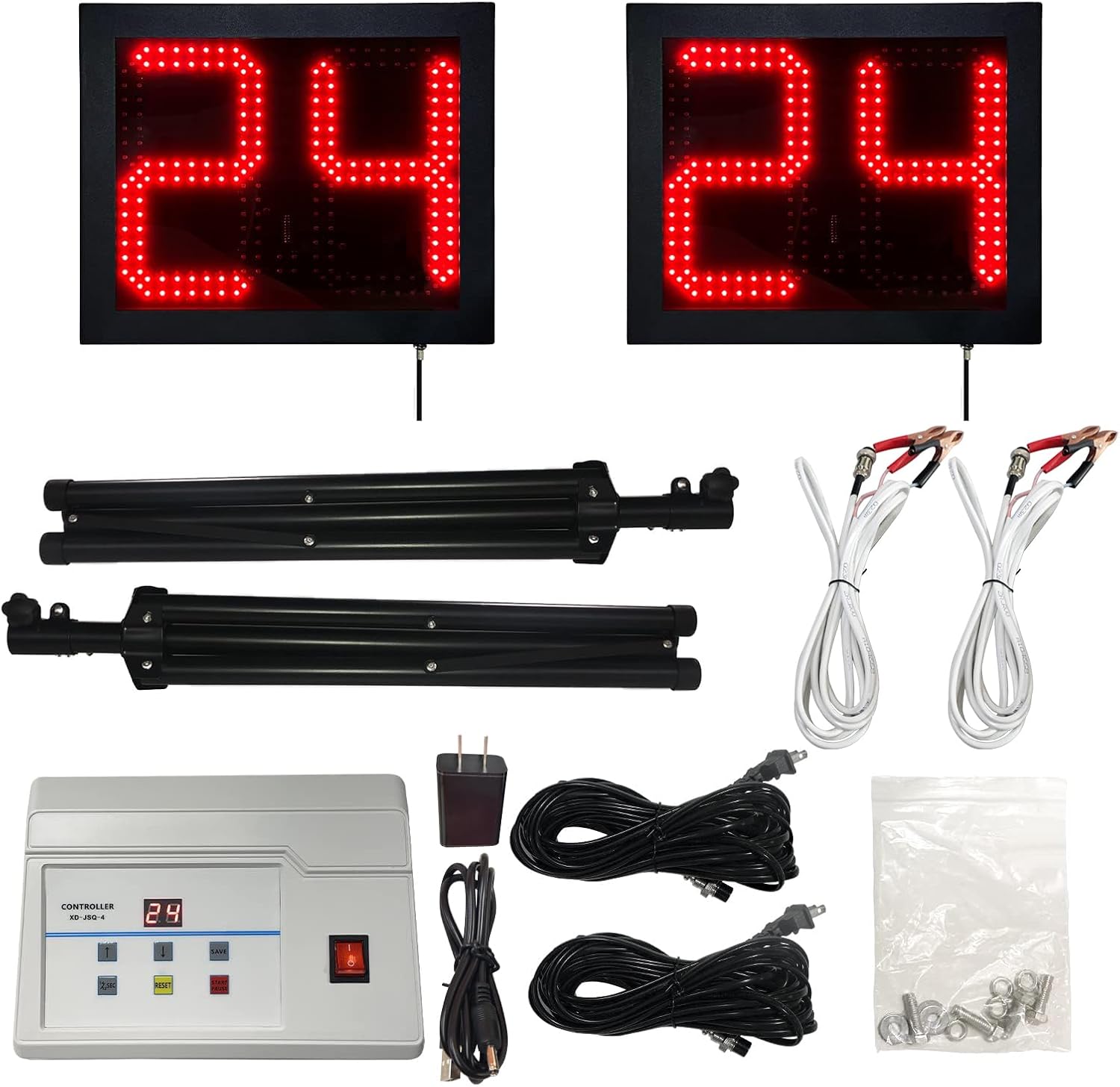 2 Units Basketball Timer Shot Clock & Controller, 14/24 Seconds Countdown, Portable Shot Clock with Buzzer, Support Tripod Installation (24S (2units with Tripod))