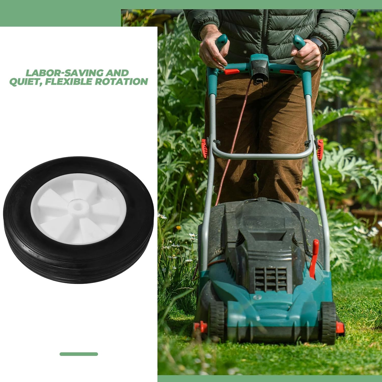 Package List 2 x lawn mower wheels Characteristics -Hole diameter:13.5mm dolly wheels replacement - Color: Multi - Size: 20.00X20.00X4.20cm/7.86X7.86X1.65in -Material:Rubber, PP -Product Info:Rubber casters -Installation is straightforward, allowing users to easily replace the wheels themselves, thereby saving on potential repair costs lawn mower accessories. -The innovative design of these wheels provides excellent stability and control, delivering a smooth mowing experience for any type of lawn trash can wheels replacement. -The design enhances mowing efficiency by making the lawn mower easier to maneuver, improving overall handling lawn mower replacement wheels. -Constructed from rubber, PP materials, these wheels are highly resistant to damage and wear, ensuring use. -These wheels are engineered for durability, making them an ideal choice for lawn mowers, ensuring reliable performance over time yard sweeper parts.Goods Informationself propelled lawn mower Upgrade your lawn mower with our wheels, specifically designed for mowers.snapper lawn mower parts These wheels are built to last, offering superior durability and reliability.bike wheels The innovative design provides excellent stability and control, ensuring a smooth and efficient mowing experience.lawn mower parts Enjoy of a well-maintained lawn with minimal effort