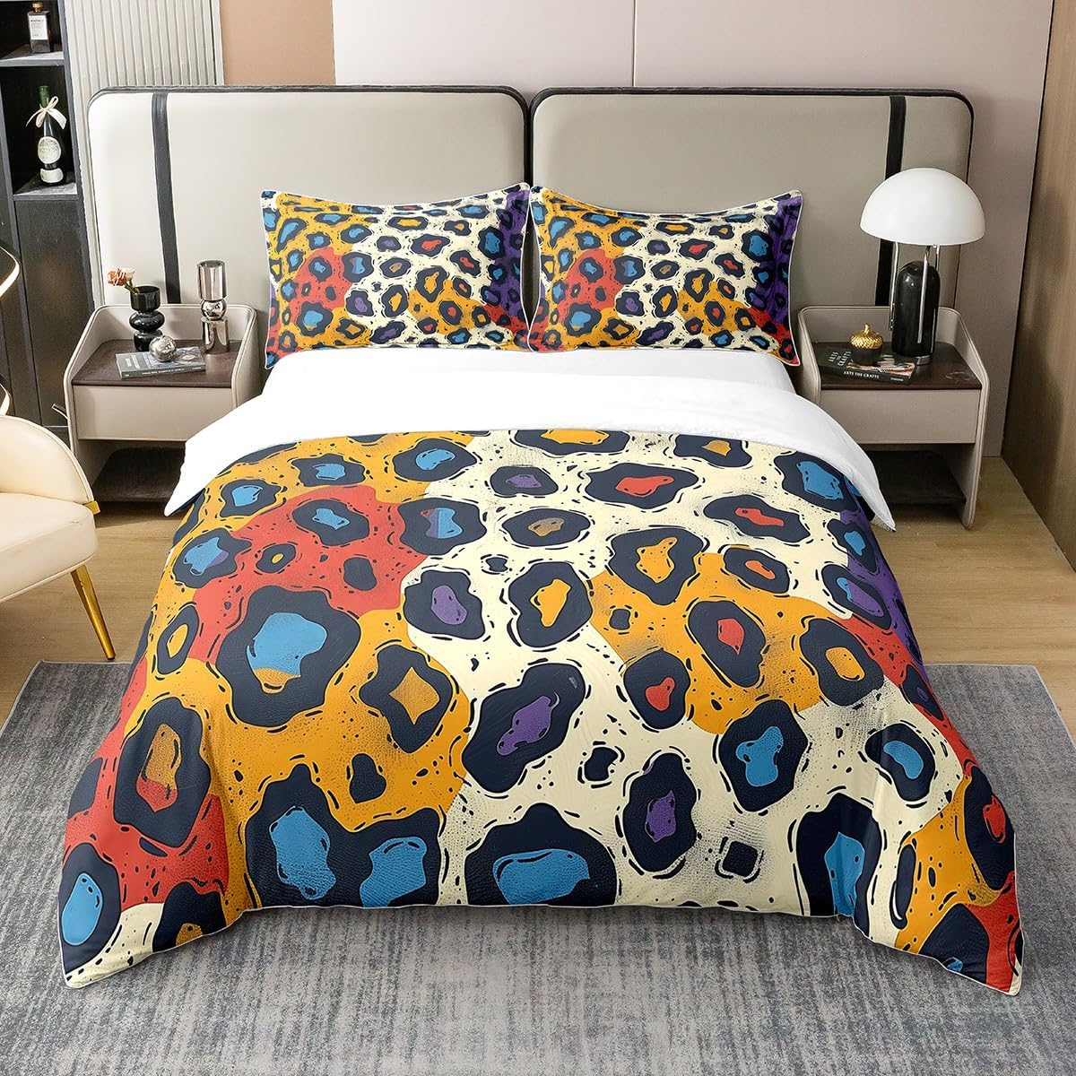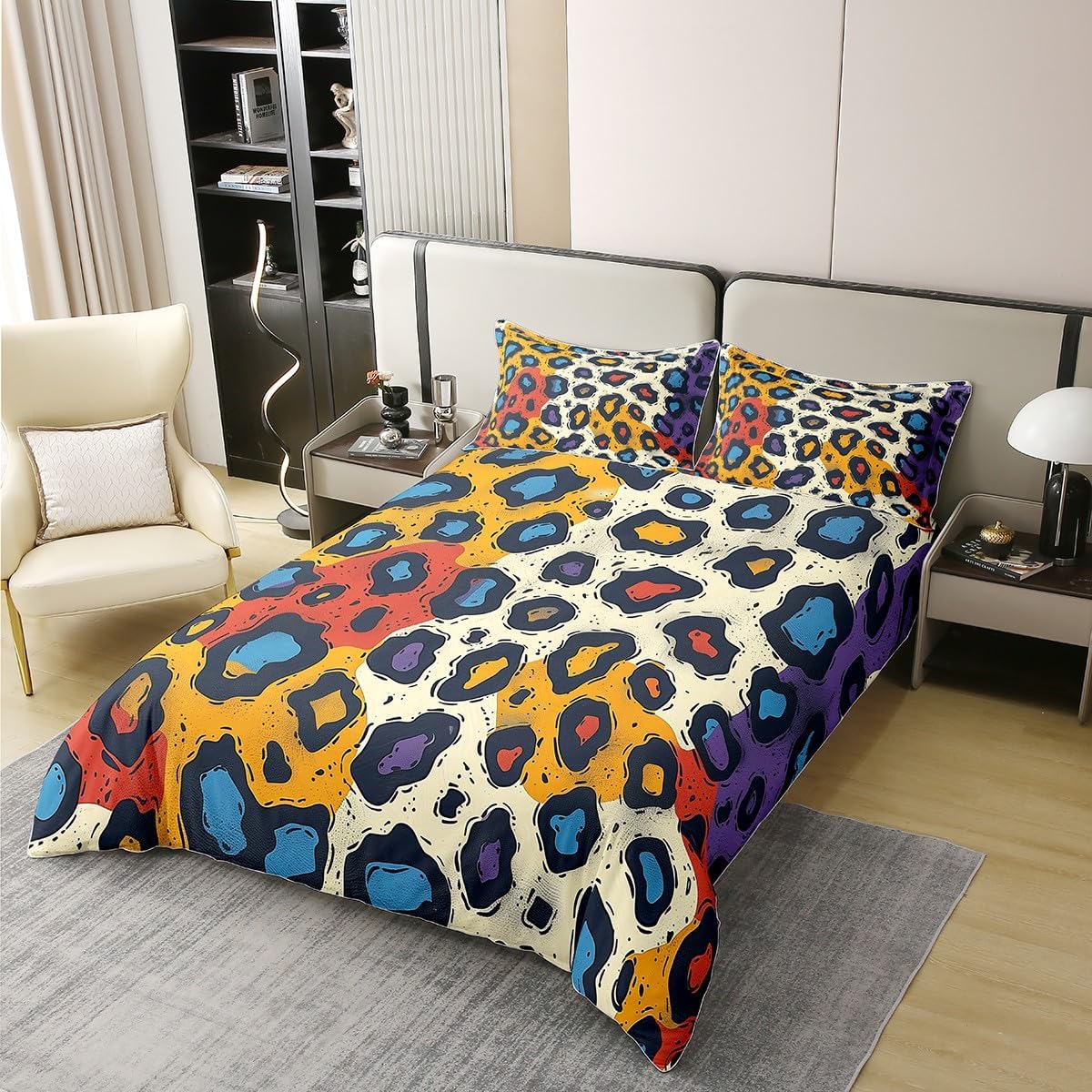 Package Include: Duvet Cover and Pillowcase, no comforter or sheet Quality duvet cover set pattern bedding set, simply decorating your rooms any time you want, bringing you fresh feel for year round use Material: Made from 100% Cotton Size Information: Twin size 2pcs duvet cover set: 1 Duvet Cover 68" x 90" 173 x 229cm, 1 pillowcase 20" x 30" 51x75cm Full size 3pcs duvet cover set: 1 Duvet Cover 80" x 90" 200 x 229cm, 2 pillowcase 20" x 30" 51 x 75cm Queen size 3pcs duvet cover set: 1 Duvet Cover 90" x 90" 229 x 229cm, 2 pillowcase 20" x 30" 51 x 75cm King size 3pcs duvet cover set: 1 Duvet Cover 104" x 90" 264 x 229cm, 2 pillowcase 20" x 36" 51 x 92cm Personalize your bedroom: Beautiful design and colorful print, making your bedroom unique and bringing you a wonderful dream Washing instructions: Machine wash separately in cold water, hang dry, do not bleach Occasion: The cute soft duvet cover bedding sets designed for children, adults, men, women, teens. This duvet cover set is also suitable for all seasons, spring, summer, autumn and winter. Warm Tips: There may be some slight differences between the color tone of the pictures and that of the actual items due to lighting effects, monitor's brightness, etc.