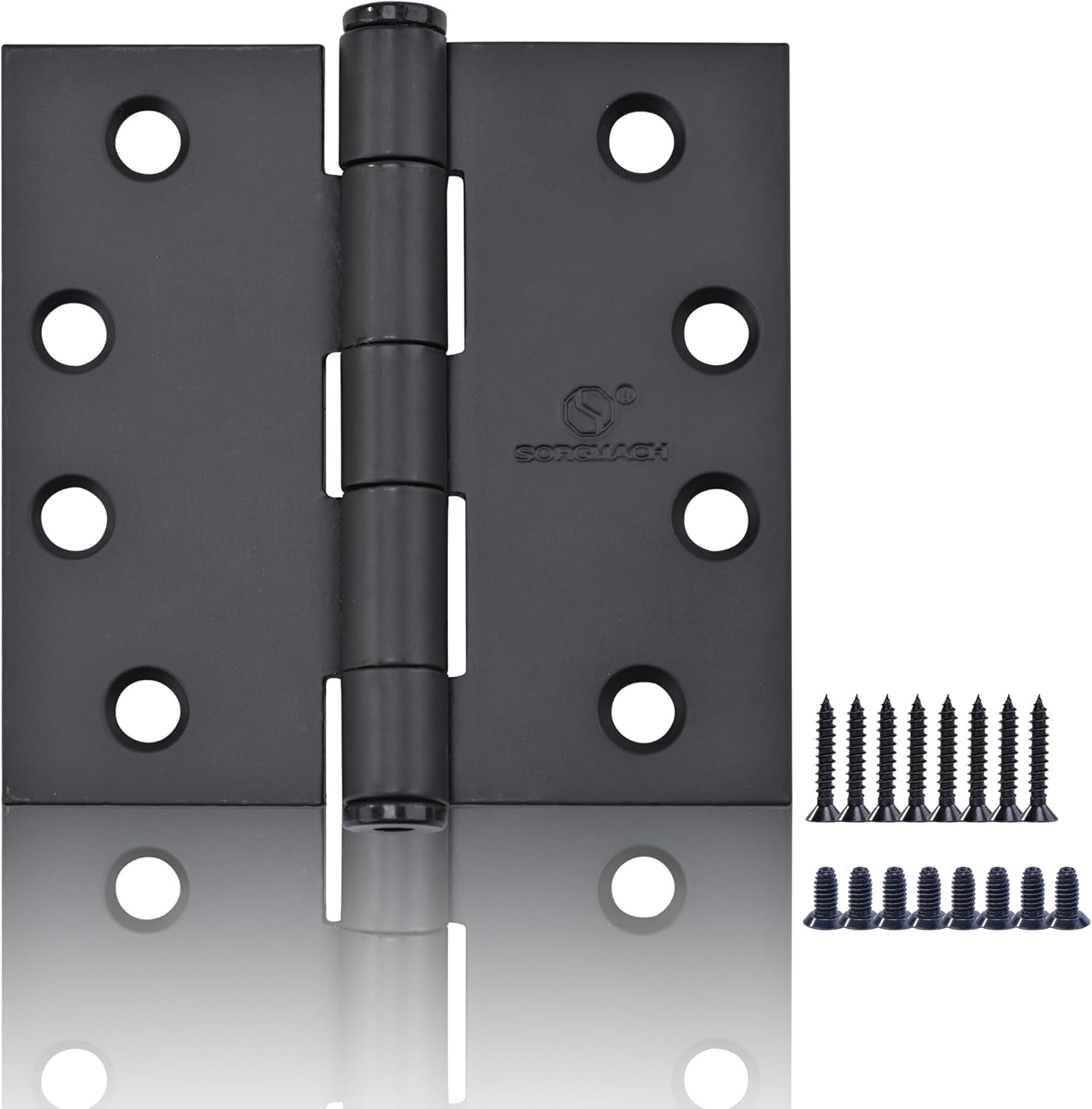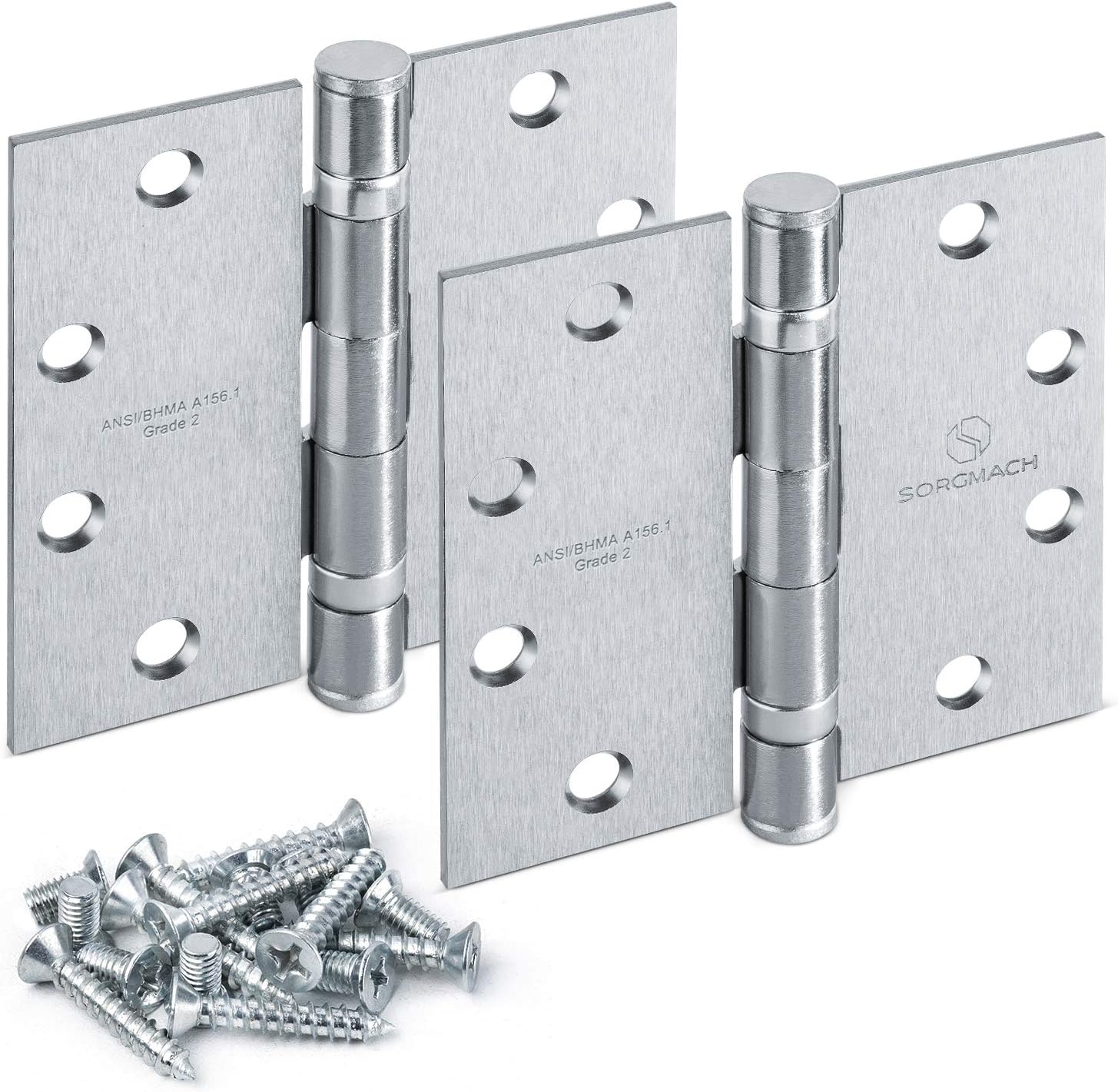 SORGMACH 304 Stainless Steel 4.5 Inch Commercial Hinges Brushed Satin Nickel Ball Bearing Doors Hinges Square Corners Interior and Exterior Door Hinges- 3 Pack Material:Stainless SteelSize:4.5"X4.5"X0.181" What do you get:3 pcs per pack, screws and instruction manual are included Hinge Thickness: 0.181 in/3.4mm
