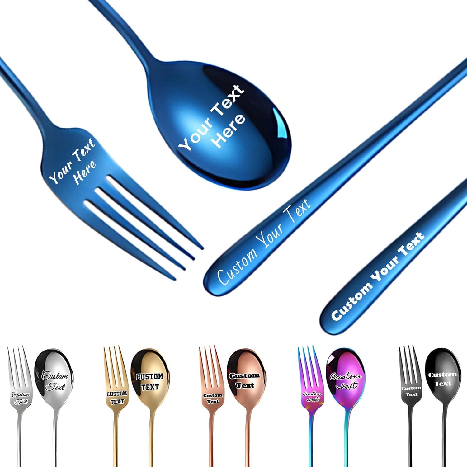 • ✅PREMIUM MATERIAL: Our personalise tablewares are made of 304 stainless steel with a mirror polish and smooth surface that is not easy to bend, deform or break. Weight is perfect - not too light or too heavy. Stainless Steel is reusable and more durable than any other material. Hand washing is always best, but forks are dishwasher safe.