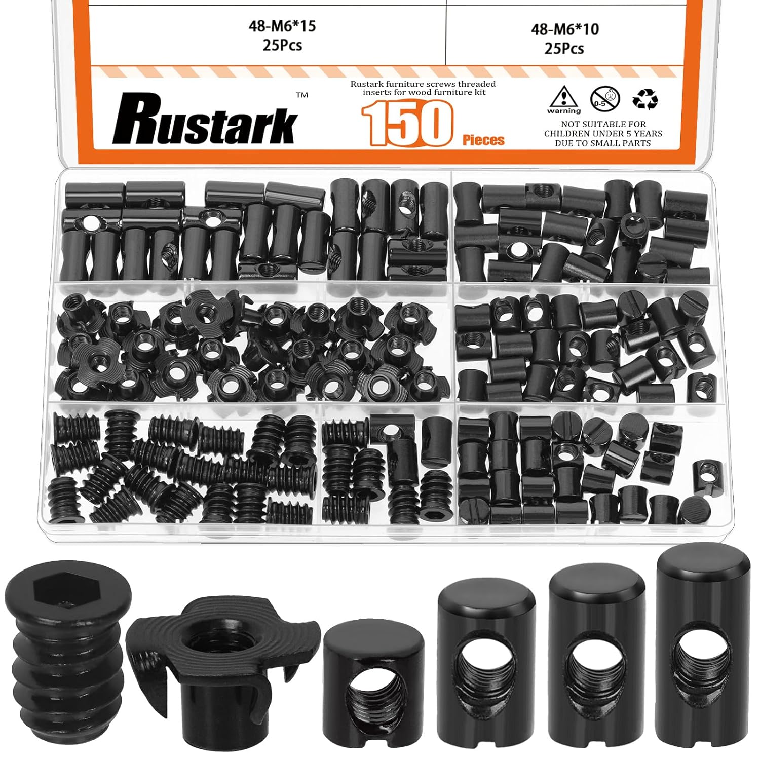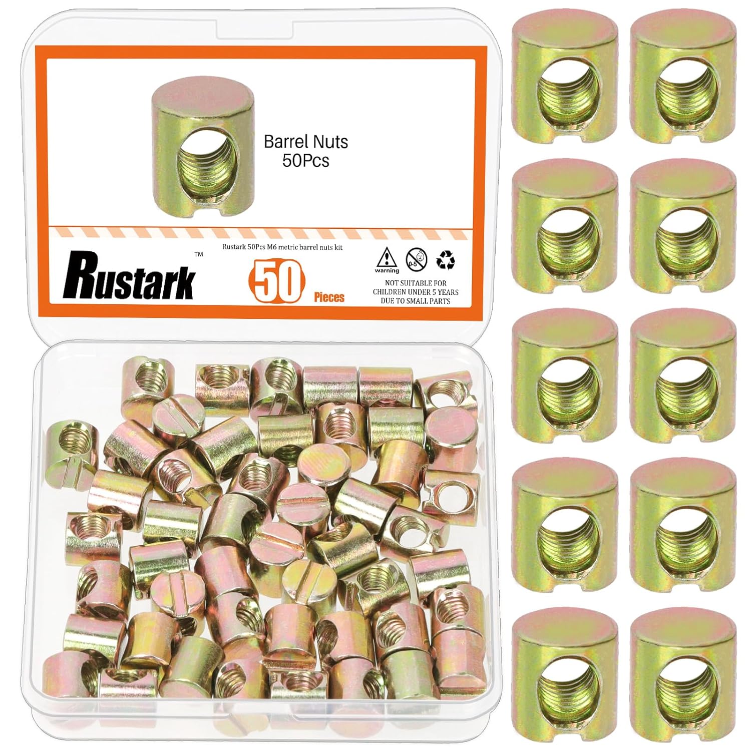 ★Rustark 50Pcs M6x10mm Black Zinc Barrel Nuts Assortment Kit Metric Cross Dowels Slotted Nut Furniture Nuts Cross Dowel Hammer Nut for Wood Furniture Beds Crib Chairs ★ WHY CHOOSE US? ❤You'll receive a 50pcs M6X10mm black zinc barrel nuts assortment kit. Sufficient quantity and suitable size can meet your different needs in daily life. ❤The barrel nut is made of carbon steel with black zinc finish which are corrosion-resistant, wear-resistant, rust-resistant, high strength and durable with long-term service life. ❤Suitable for solid wood, plywood, fiberboard, particleboard alike, assembling most beds, cribs, flat furniture, wood, kitchen countertop, cabinets, and so on. ❤The wood furniture hardware kit has different sizes and types to cover most of your needs in daily life. ★Specifications: ✯Product Type: Barrel Nuts Assortment Kit ✯Quantity: 50Pcs ✯Material: Carbon Steel with Black Zinc Finish ✯Color: Black ✯Size: M6x10mm, Please see the 2nd picture for more size information. ★What You Get: 50pcs x M6x10mm barrel nuts Total: 50pcs ❤Warm Tips: -If you come across any questions or problems, please feel free to come to us. We will solve it for you as soon as possible!