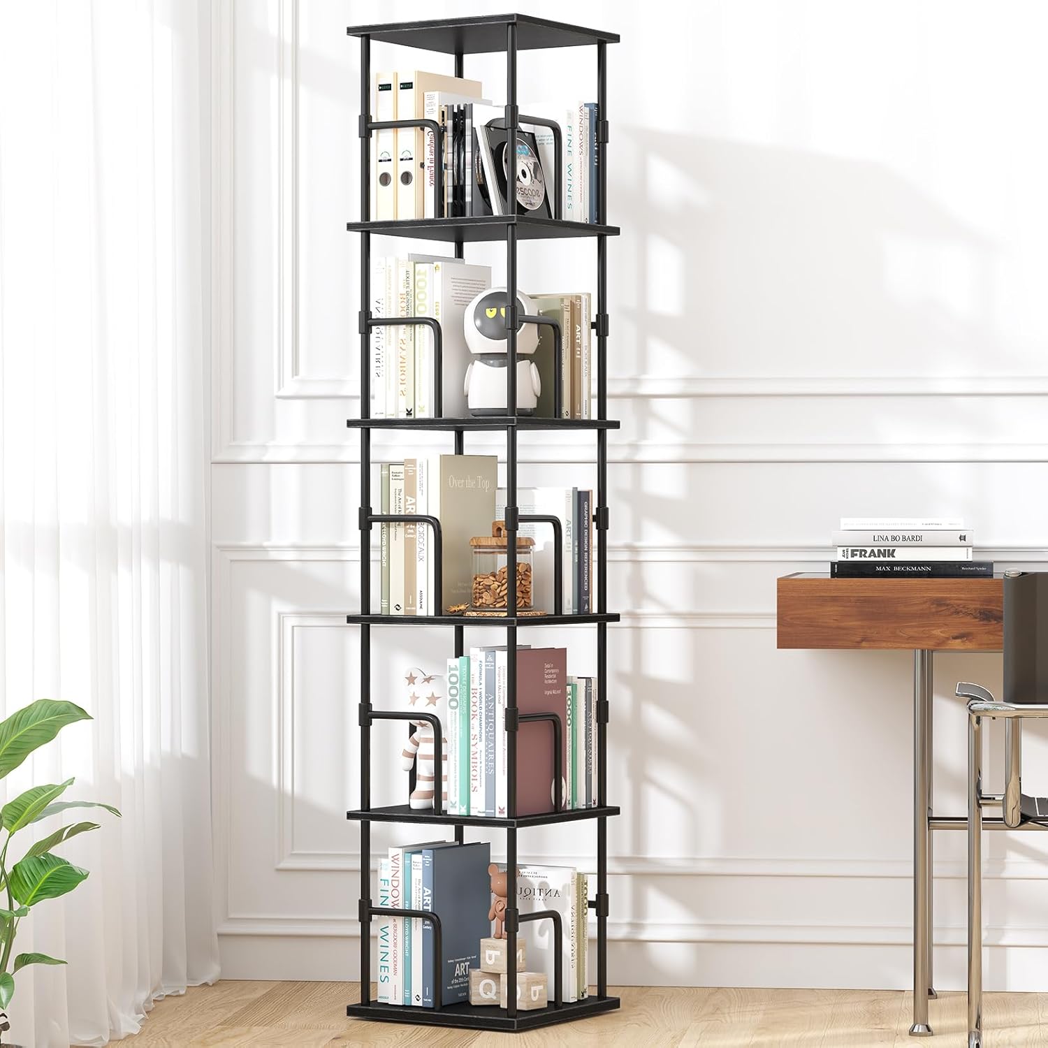 • 【Quick & Easy DIY Assembly】:Stand rotating bookshelf tower can be assembled into a 1-5 layer book shelf as you wish,adjustable shelf height for greater ease of use. Additionally, making it easier to complete the installation, the turntable bookshelf comes with step-by-step instructions and all marked tool parts, you can assemble the book case within 30mins easily.