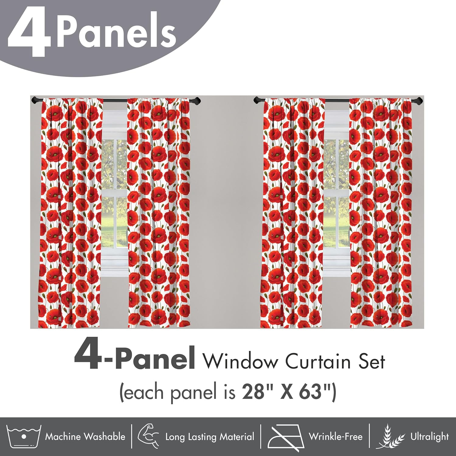 MADE FROM - %100 brushed soft microfiber fabric. Lightweight room darkening, modern window coverage. FEATURES - 2.5 inch rod pocket. For living room, bedroom, dining room & patio door decor. Versatile. MACHINE WASHABLE - On cold delicate cycle, tumble dry on low. Allows your privacy with ease & style. PRINTED - With state of the art digital printing technology. Long lasting bold colors & clear image.4 panel window curtain panel set for your living room, dining room, bedroom, kitchen, dorm rooms and even garden doors. Matches well with various color palettes of curtains, rugs, furniture and any other home decor accent accessories. Made from high quality 100% brushed microfiber fabric. Lightweight with a very soft touch. They can be gifted to your mom, dad, sister, brother, grandma, grandpa, wife, and other beloved ones with 10's of thousands of designs. Our panel set has a semi-darkening feature, it lets the healthy and beautiful sunshine in a little. Easy to use for all seasons and every decor. As manufacturers of printed home textiles, we follow current trends and bring you the latest home fashion. Environmentally friendly, no dye substance harming the health of your family. Either a present to your family, friend, relative, boyfriend, girlfriend or yourself, the item should be interesting, authentic. Men, or women everybody will love them! Anyone from any profession will be thrilled by the difference these curtains bring to their house decor. Due to manual measurement, please kindly allow a 1-2 cm discrepancy. The digital images we display have the most accurate color possible, however, due to differences in computer monitors, we cannot be responsible for variations in color between the actual product and your screen. No hardware is included.
