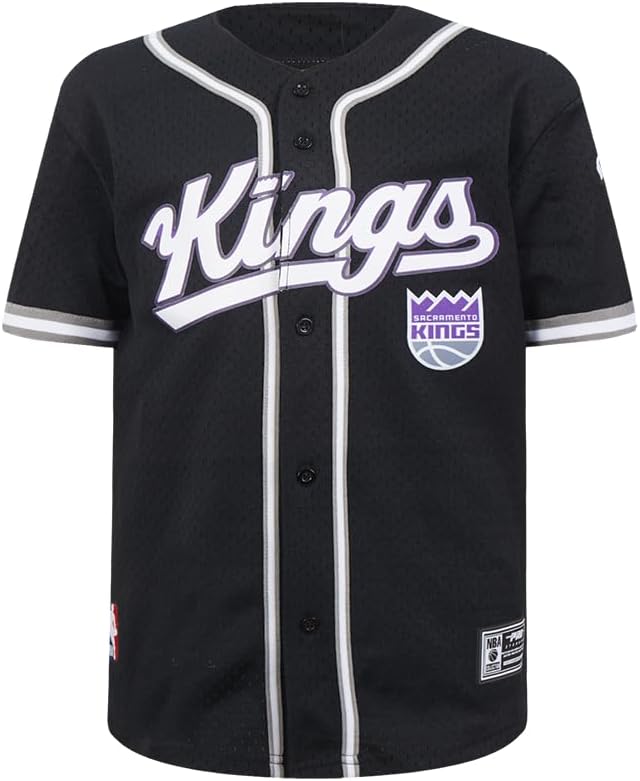 Celebrate your team's legacy with our Big Boys NBA Mesh Button Down Top. This versatile piece seamlessly blends authentic league aesthetics with streetwear style. Featuring printed tackle twill applique and 3-D embroidery