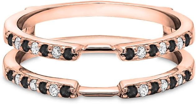 This Enhancer Crafted In 925 Sterling Silver, Available In 14K White, Yellow And Rose Gold Plating. Round Cut Simulated Black & White Diamond Set in Prong Setting.