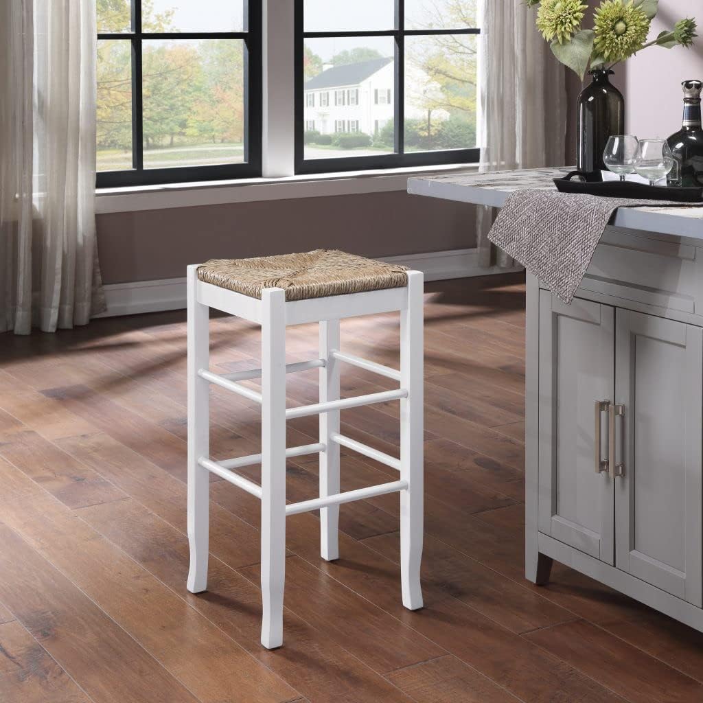 • VARIETY OF FINISHES: This backless stool is complemented by the rush seat and flared legs. It is available in a varity of finishes. This bar stool is sure to add a sophisticated touch that complements your décor.