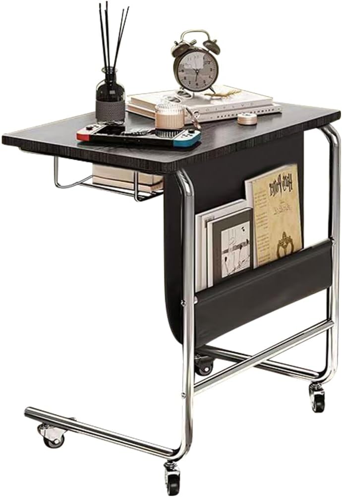 C-Shaped Side Table, End Table with Wheels, C Table for Couch, Sofa, with Storage Bag for Bedroom, Living Room, Ash Brown