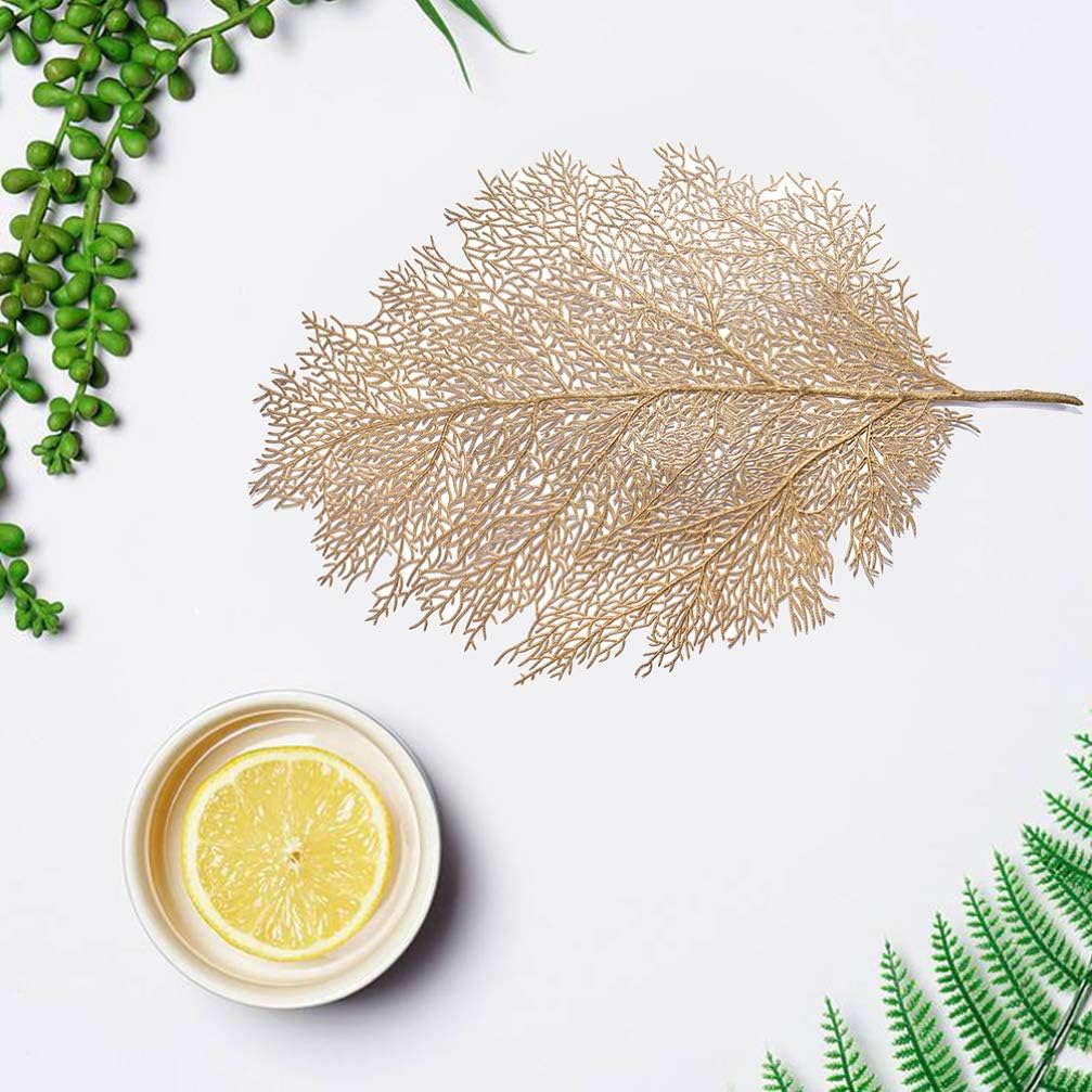 DescriptionTop-grade design placemats is decoration and life quality of your home,dining hall, kitchen,hotel and business office.Features- Size: 58x37x1cm,22.8x14.6x0.4inch.- Material: PVC.- Color: Golden.Package Including5 x Artificial Coral Branch Placemat