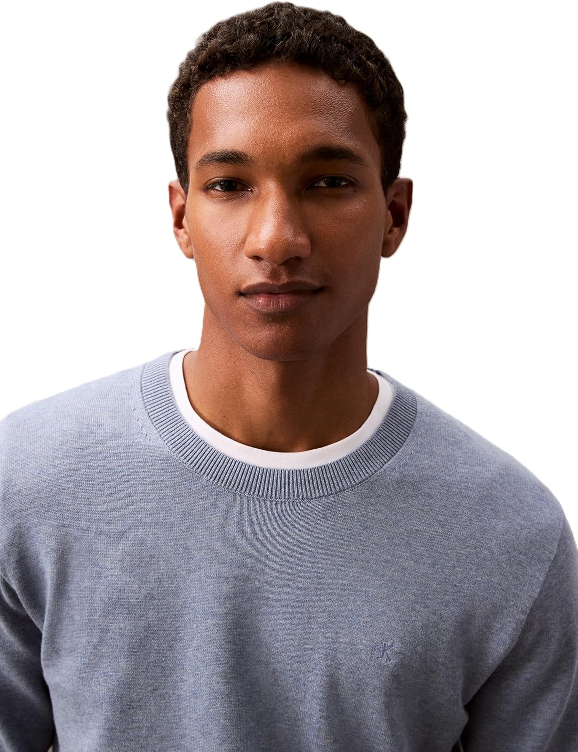 Made of 100% cotton, this Calvin Klein sweater offers premium comfort for everyday wear. Made with long sleeves and a round neck. Equipped with banded cuffs and finished with a monogram CK logo embroidered on the upper chest.