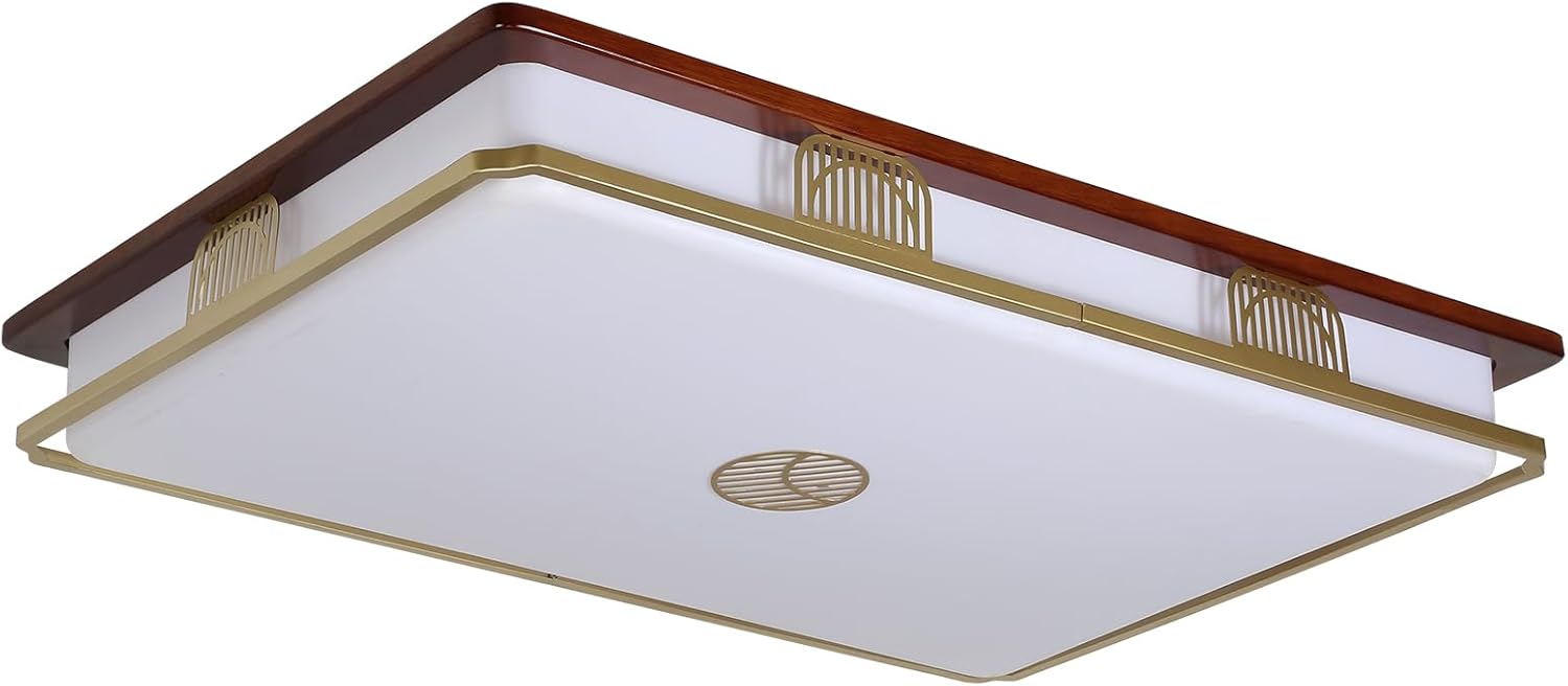 Specifications Color: Walnut Color, White, and Copper ColorStyle: New Chinese StyleShape: RectangularMaterial: Iron, Solid Wood, Hardware, AcrylicProcesses: Sanding, PaintingAssembly Required: NoMounting Type: Ceiling Mount Indoor/Outdoor Usage: IndoorLight Fixture Form: Flush-Mounted Ceiling Lamp Power Source: Corded ElectricLight Direction: DownlightEfficiency: E Voltage: 95-260V Power: 108W Light Source: LEDInfinitely Dimmable: YesLight Color: Yellow, Warm, WhiteApplicable Area: 25㎡/269ft² Product Size: 97*65*11cm/38.18*25.59*4.33in Package Included1* Ceiling Light1* Remote Control Notes1.Please check the product size before ordering to make sure it fits your room.2.Please wear electric insulation gloves(not included) and avoid scratching the surface of the lamp plate and the electric wire when installing. Please make sure that the power supply has been cut off before installation, and conduct a power test before installation. Please have this light installed by a professional electrician.3. Please allow the slight color difference caused by the shooting light and 1-3cm error due to manual measurement, and make sure you do not mind before you order.