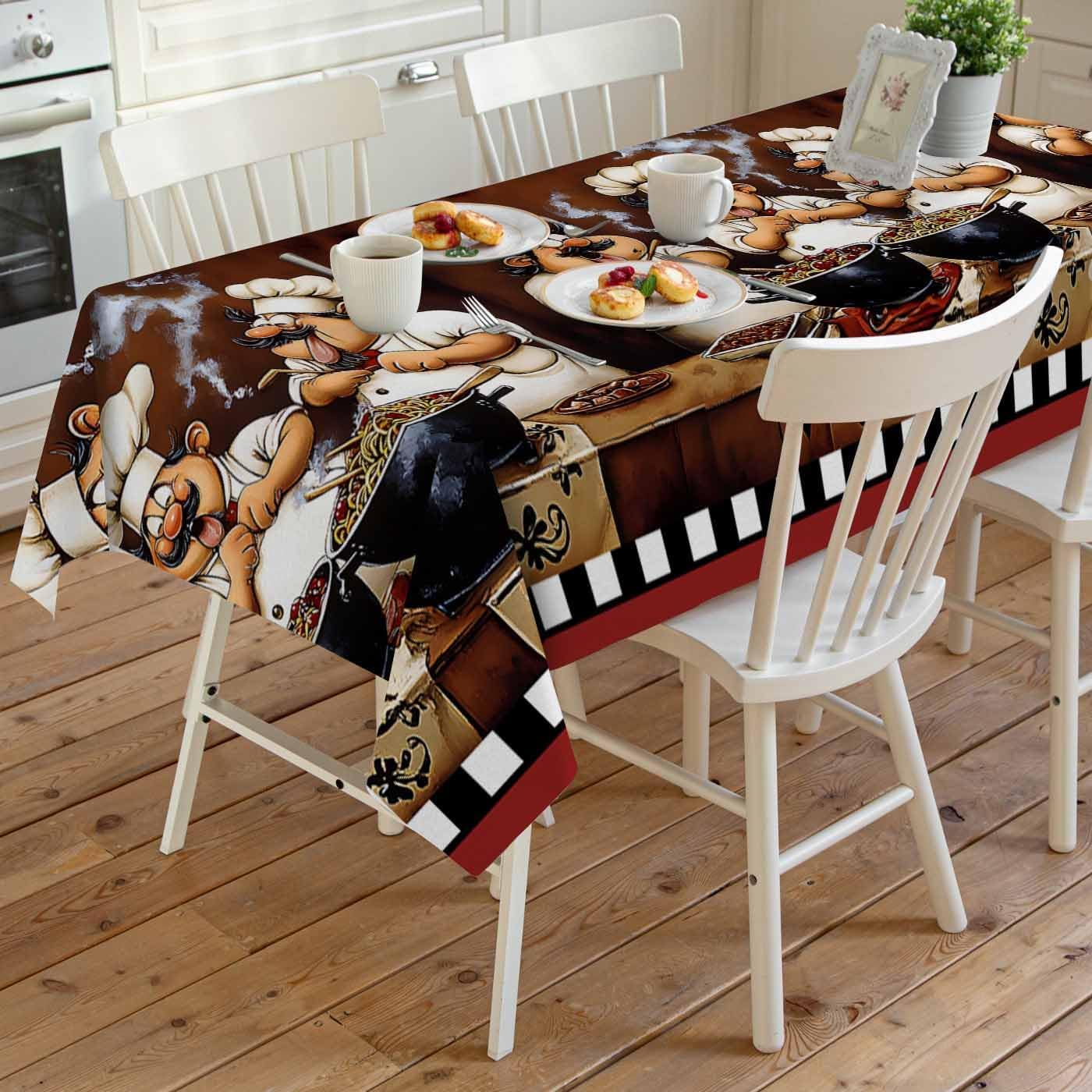 Fat Chef Waterproof Tablecloths Rectangle Dining Table Cloth Cartoon Vintage Black Check Plaid Washable Outdoor Table Cover for Kitchen, Cafe, Party, 54 x 108 Inch