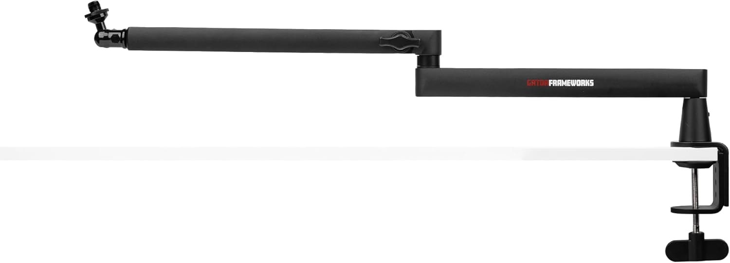 Gator Frameworks Deluxe Desk-Mounted Broadcast Microphone Boom Stand For Podcasts & Recording, Integrated XLR Cable, (GFWBCBM3000)