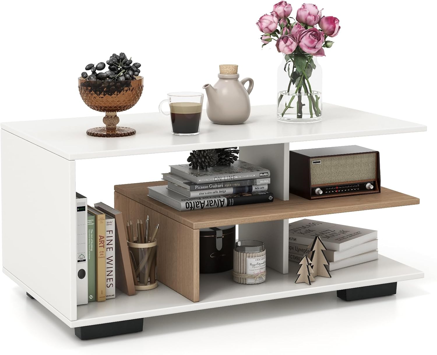 • [Modern Design & Geometric Aesthetics]: The coffee table with clean lines and sleek finish adds a touch of contemporary style to any living room decoration. It features an L-shaped middle shelf that makes it stand out from other boring 3-tier tables.