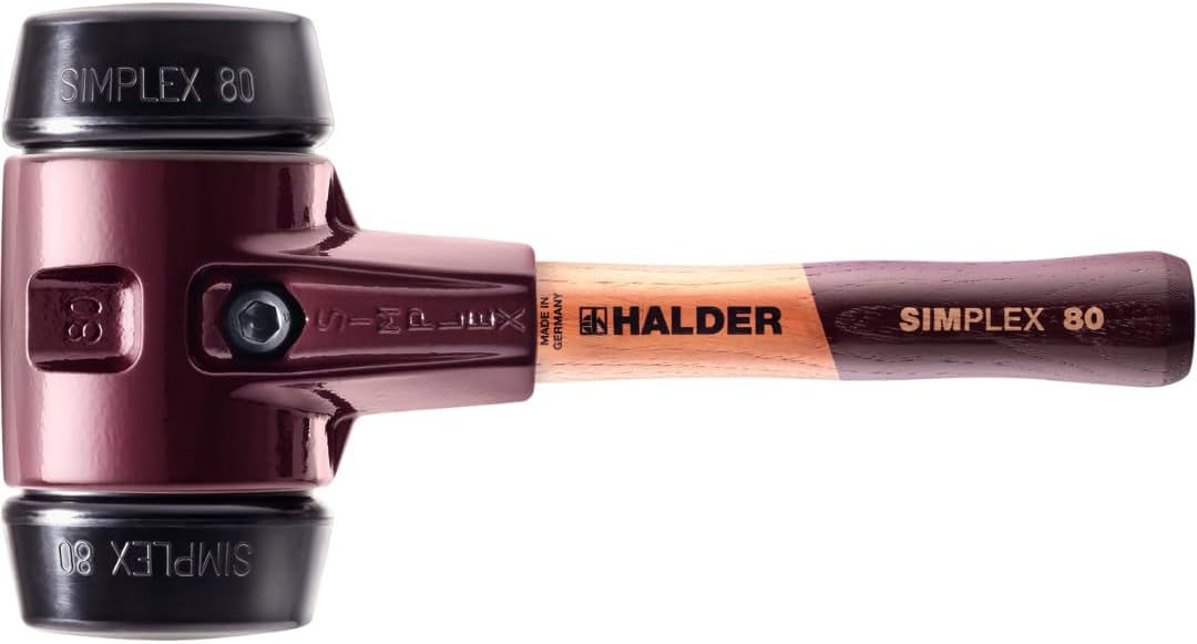 The SIMPLEX series 3002 is equipped with a composite rubber insert on either side. This medium-hard rubber insert (series 3202) is an absolute top seller. Ultra low-wear, impact cushioning, and odorless, it offers a much longer service life than a conventional rubber hammer. Made of cast iron, the housing comes with an integrated handle protection sleeve that provides for a high level of break resistance. Damping vibrations and shaped ergonomically, the high-quality wooden handle has a double coat of varnish in the grip area and is thus resistant to dirt. In line with the smart SIMPLEX principle, all components are replaceable and can be retrofitted. This translates to savings in both money and resources.