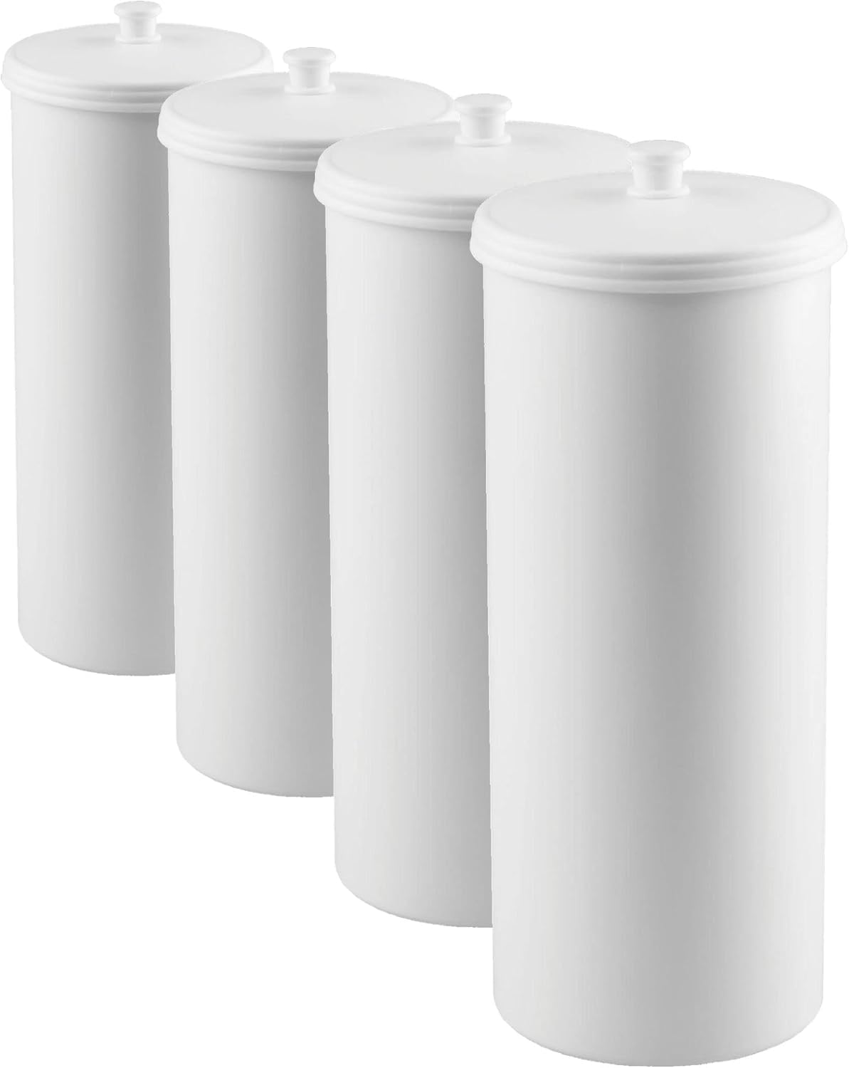 EASY ACCESS - This compact toilet paper canister keeps backup rolls tidy and easily accessible and fits into smaller spaces, like powder rooms or guest bathrooms, where storage is limited