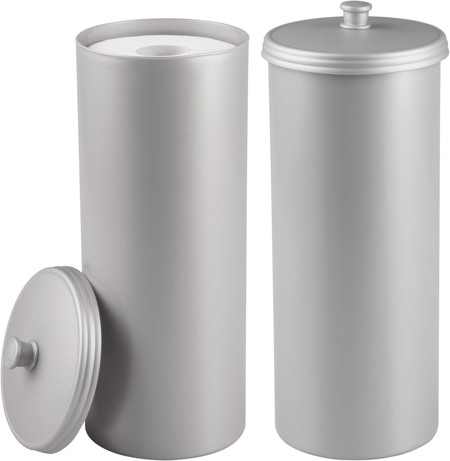 DISCREET STORAGE - This floor-standing iDesign Kent Toilet Paper Holder Stand keeps 3 spare rolls of toilet tissue neatly organized and covered, and the nesting lid is topped with a decorative knob for easy opening