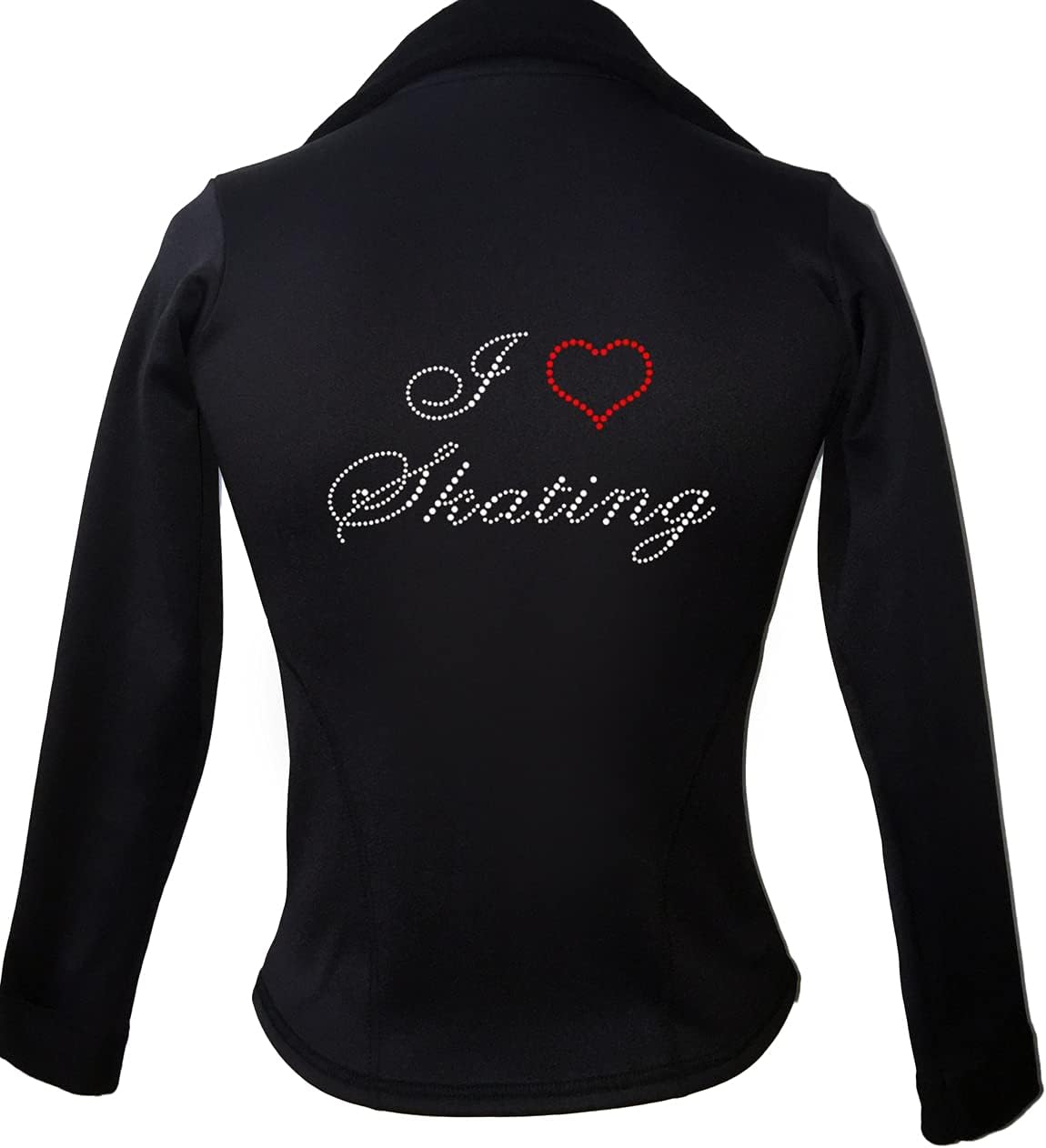 This beautiful jacket is made from supplex four way stretch material. It is decorated by crystal in a spiral like design that took the ice skating fashion by storm. Silver trim makes the jacket really pop when you hit the ice. Extremely comfortable to skate in and a great fashion statement. The sleeves come with a thumb loop for when you don't want to wear gloves and need extra protection.