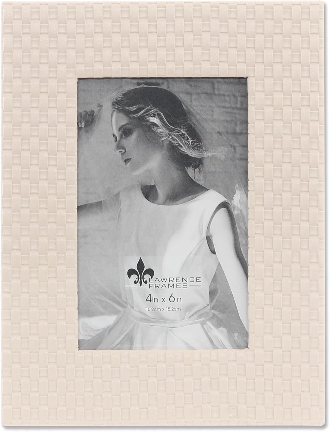 Lawrence Frames Vegan Leather Picture Frame, Diagonal Design, 4x6, White (Pack of 2)