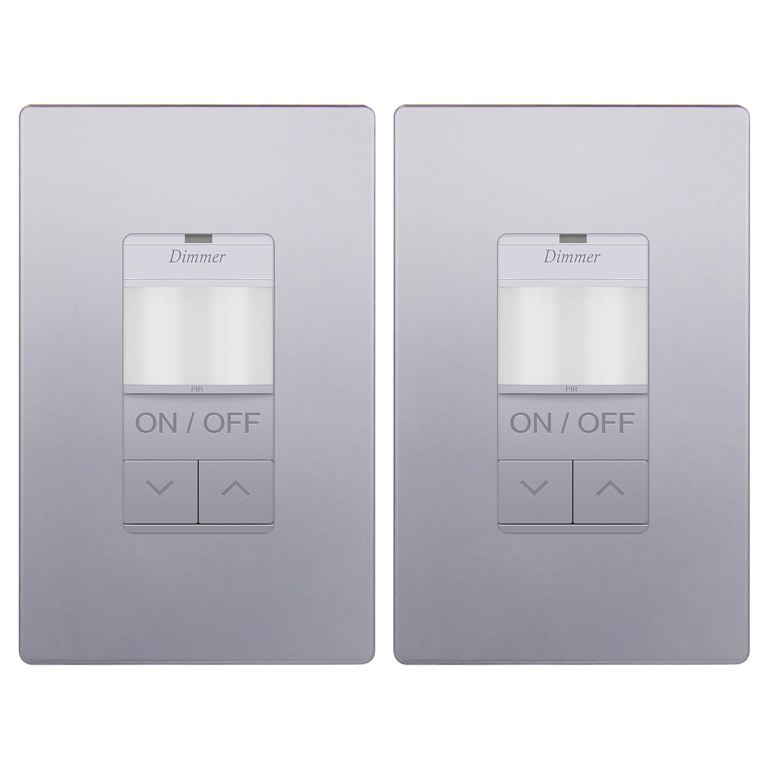 LIDER Motion Sensor Dimmer Switch for Dimmable 200W LED/CFL Lights, 3-Way, 120V, Modern Upgrade, No Neutral Required, No Ground Required, UL Listed, Wall Plate Included, Black, 2 Pack