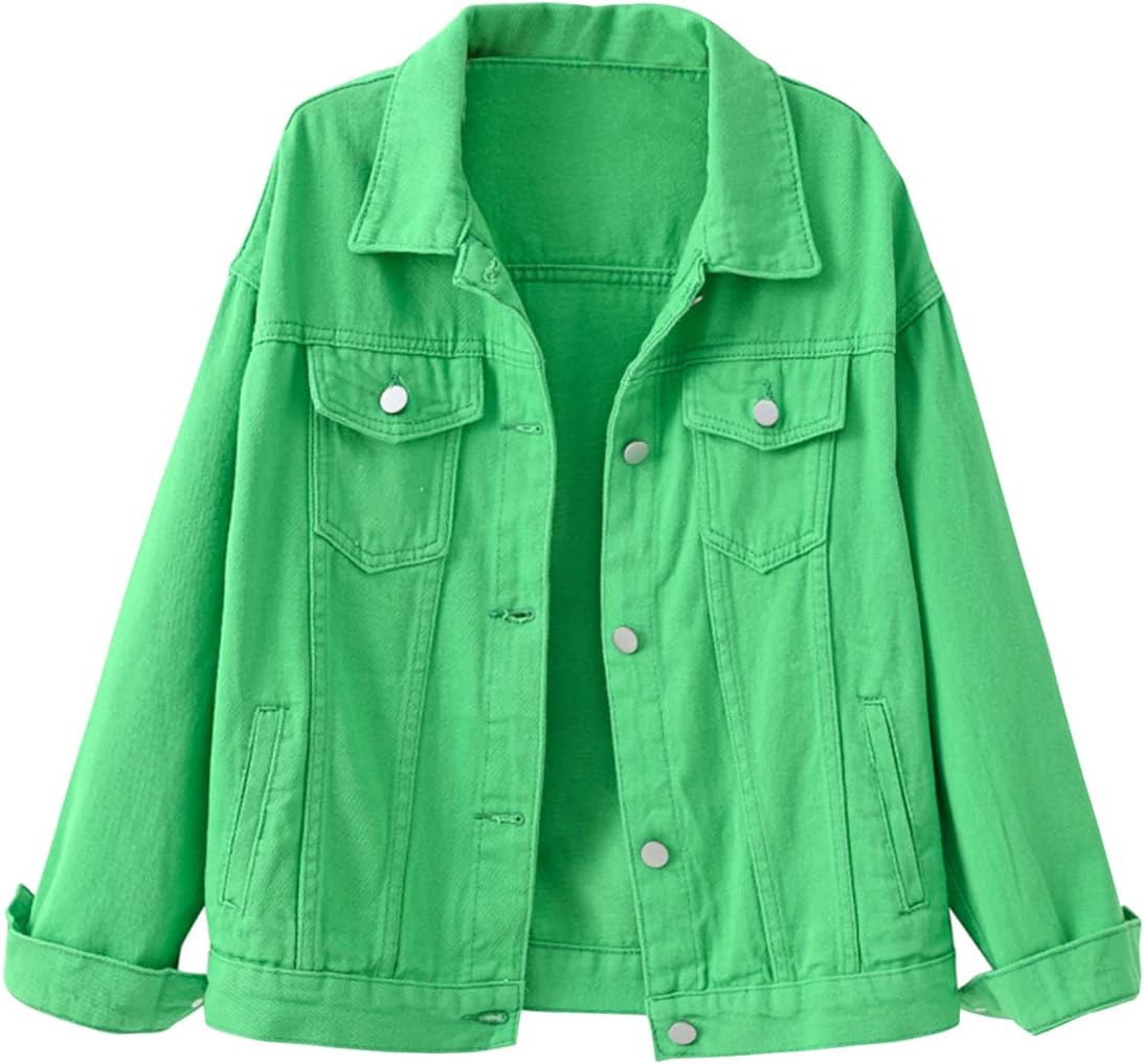 Locachy Women's Casual Denim Jacket Solid Color Basic Long Sleeve Jean Jacket Coat